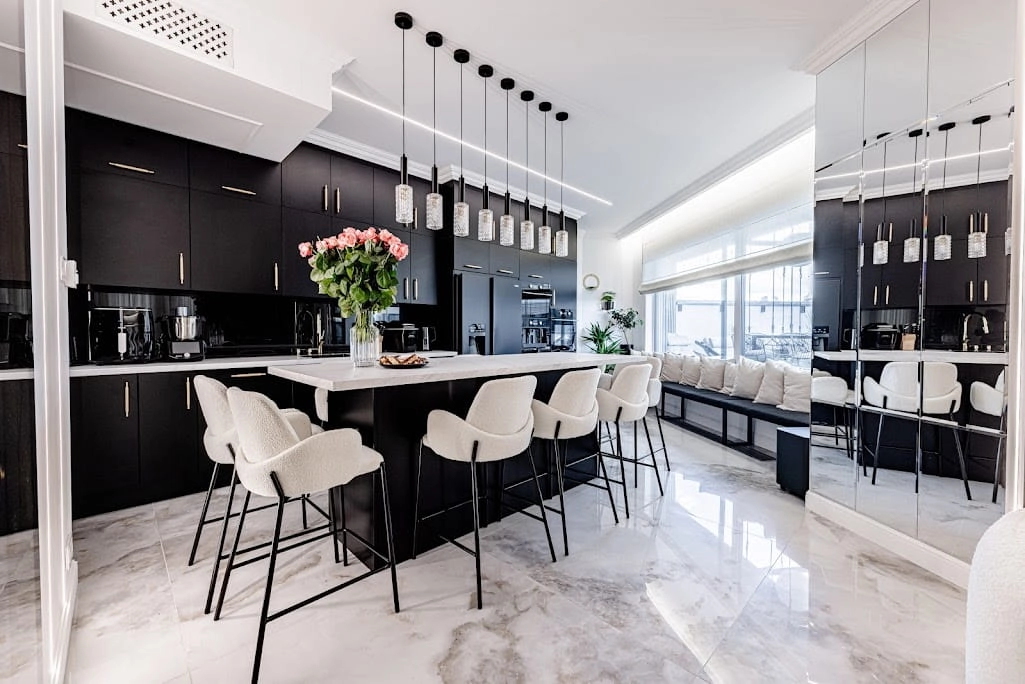 - Wszechstronność – idealny do kuchni, jadalni, baru i przestrzeni otwartych