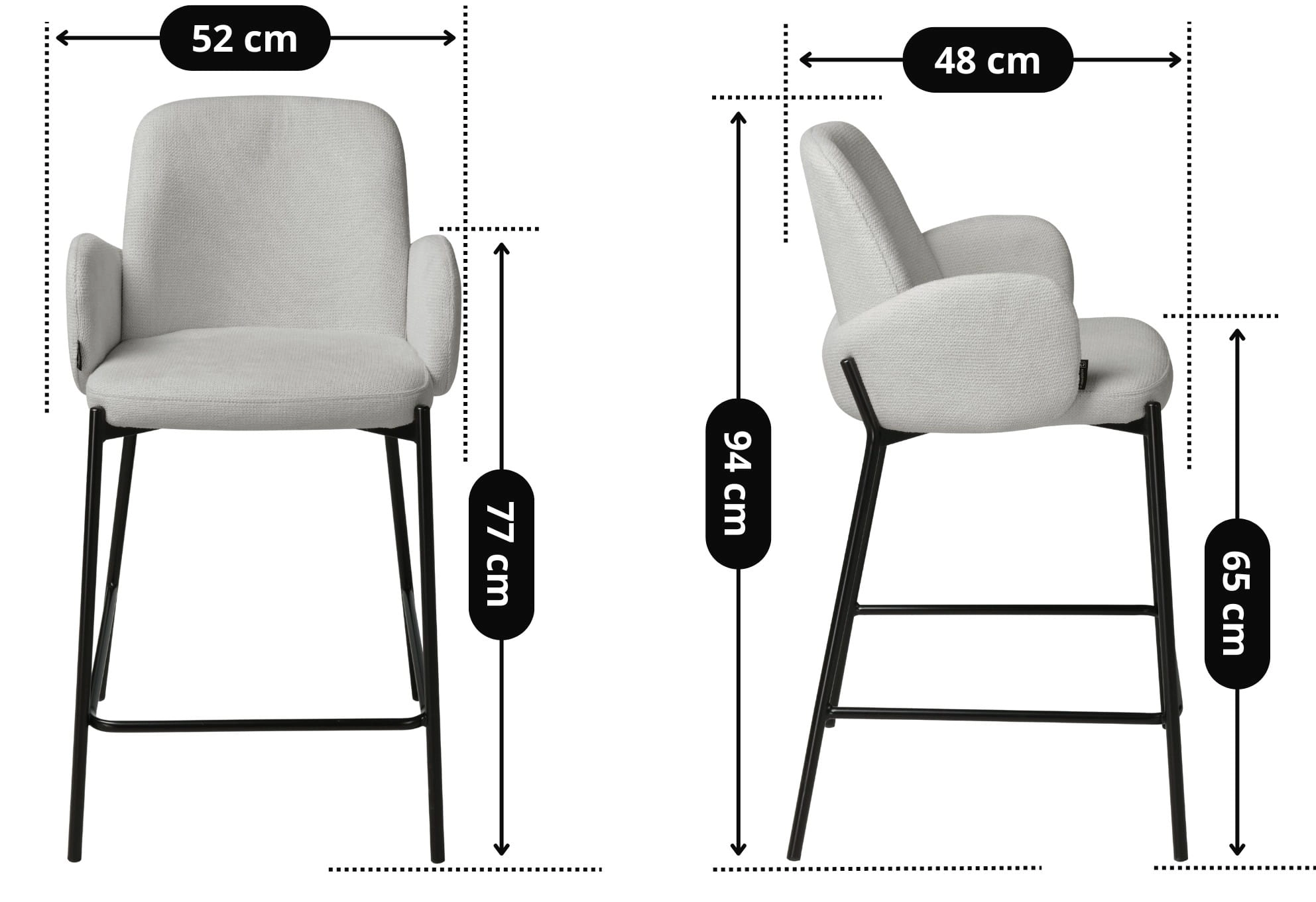 - Wysokość do siedziska: 65 cm