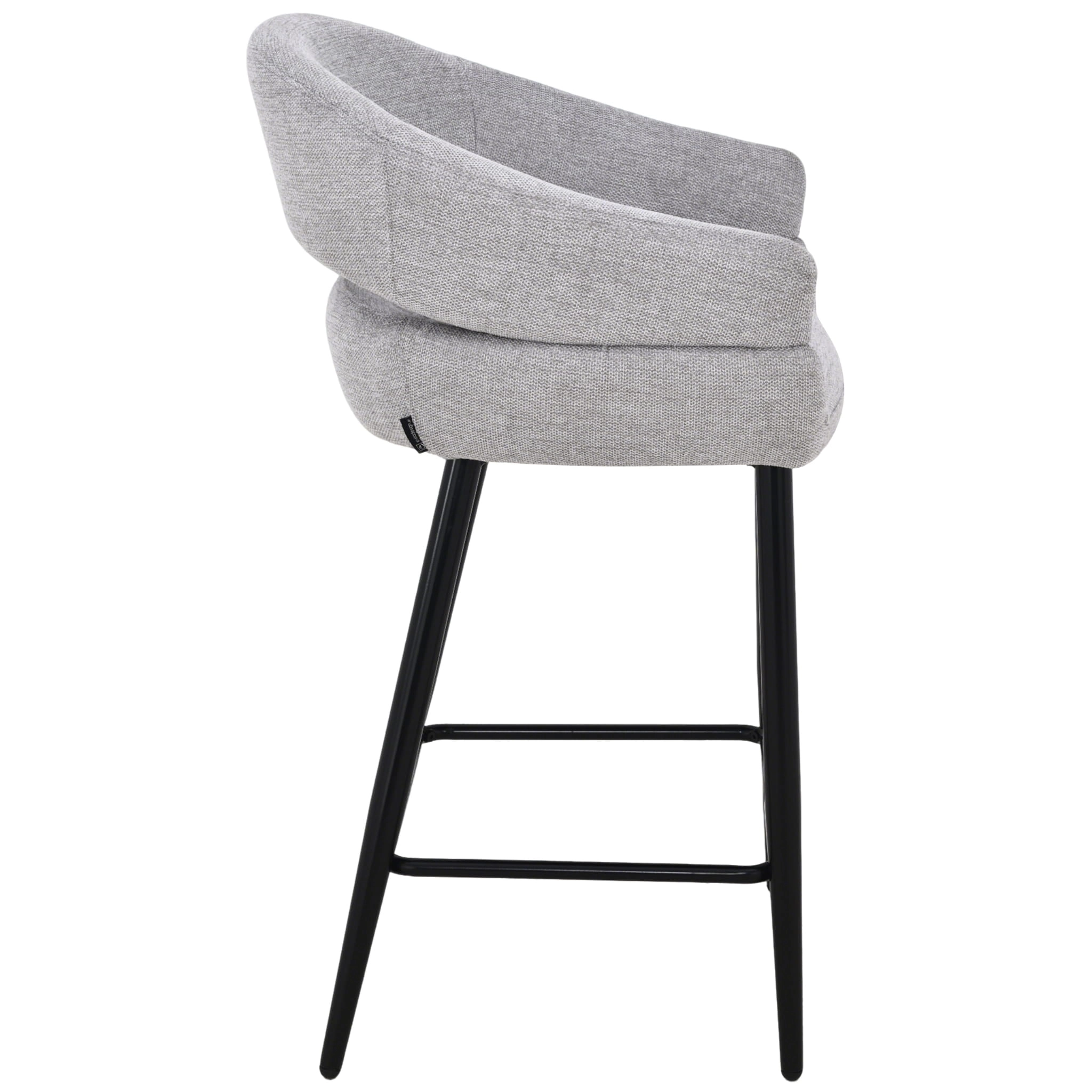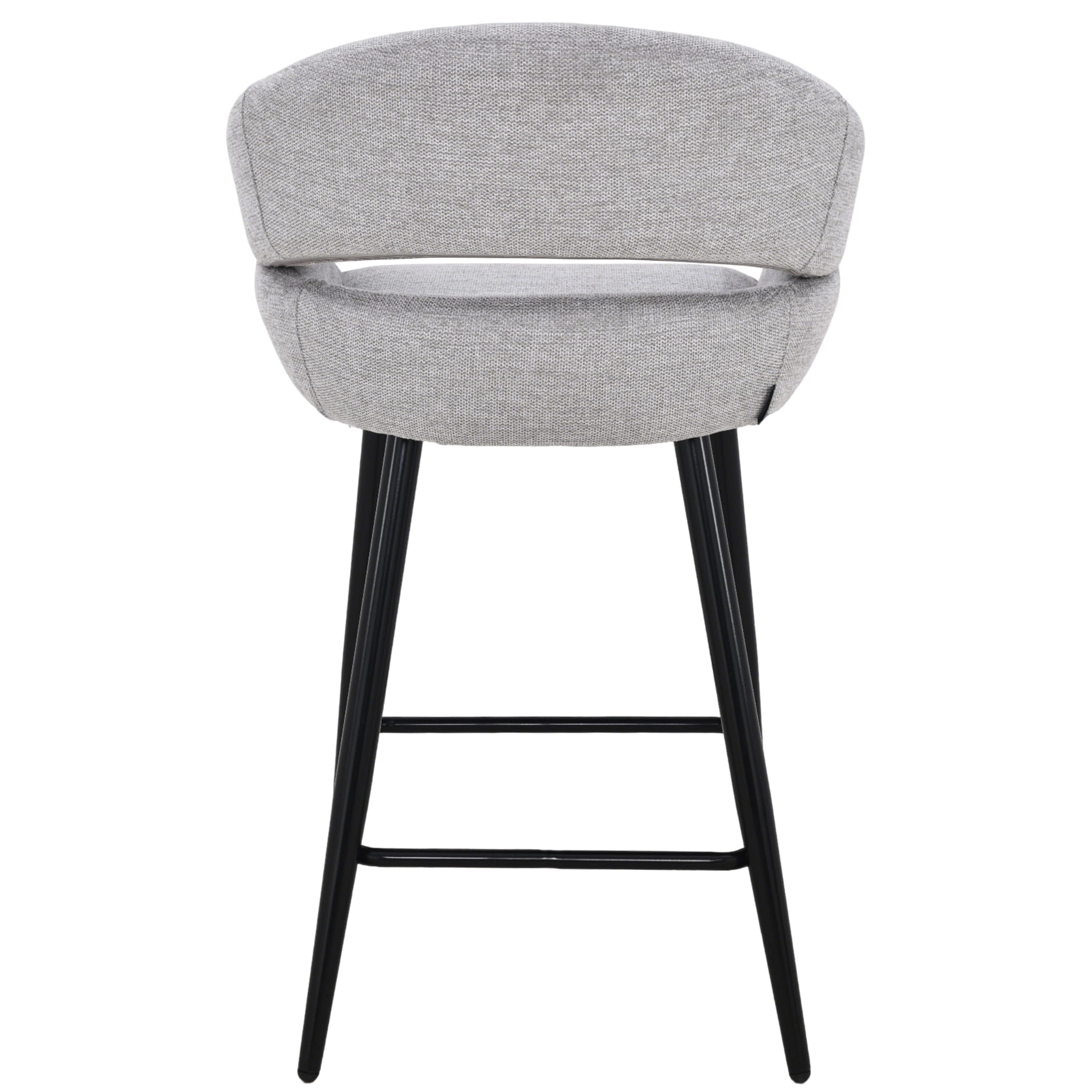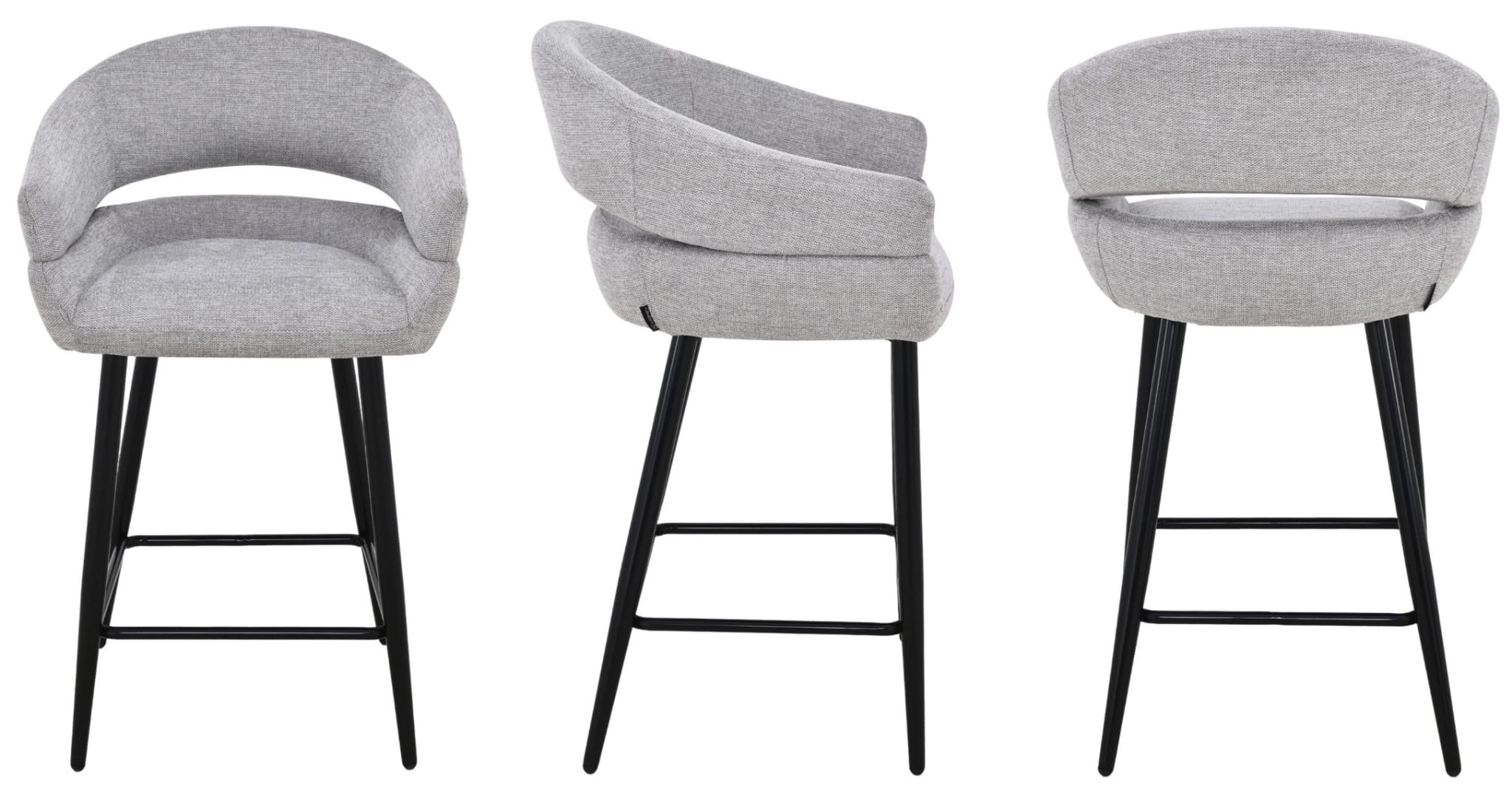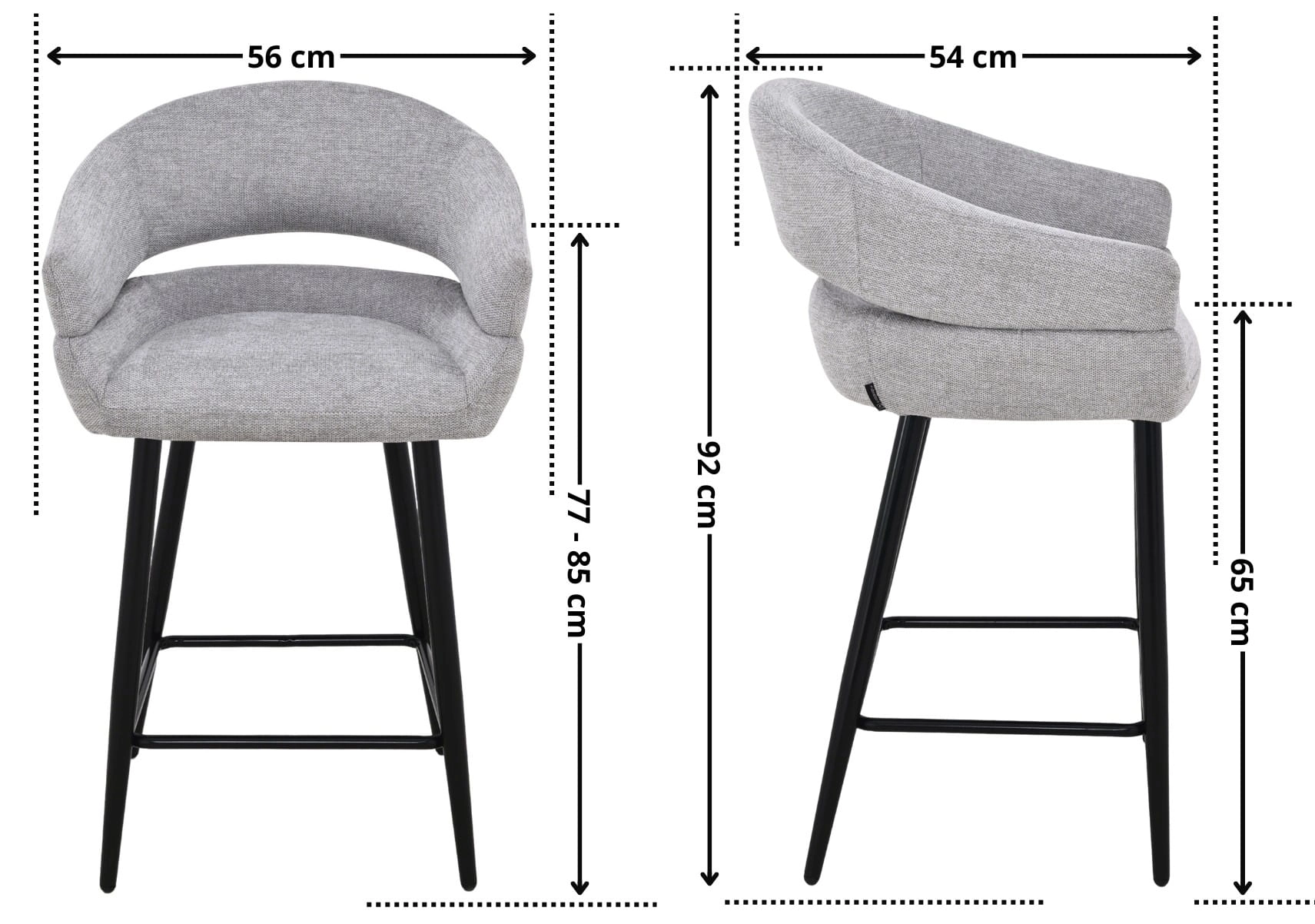 Szara tapicerka z subtelną strukturą tkaniny doskonale komponuje się z czarnymi, metalowymi nogami, tworząc uniwersalne połączenie do wnętrz w stylu nowoczesnym, skandynawskim, japandi czy loftowym. Stabilna konstrukcja i podnóżek zapewniają wygodę nawet podczas długich spotkań przy blacie kuchennym czy barze.