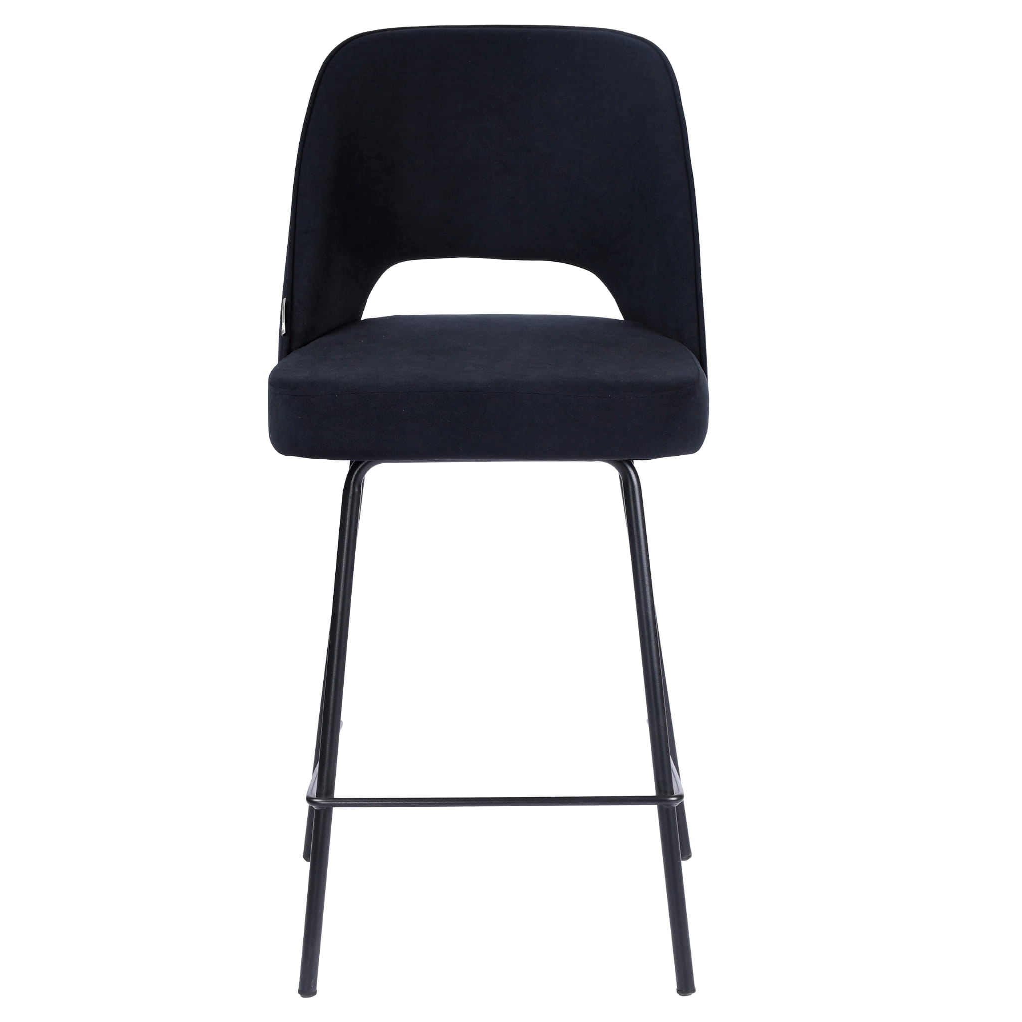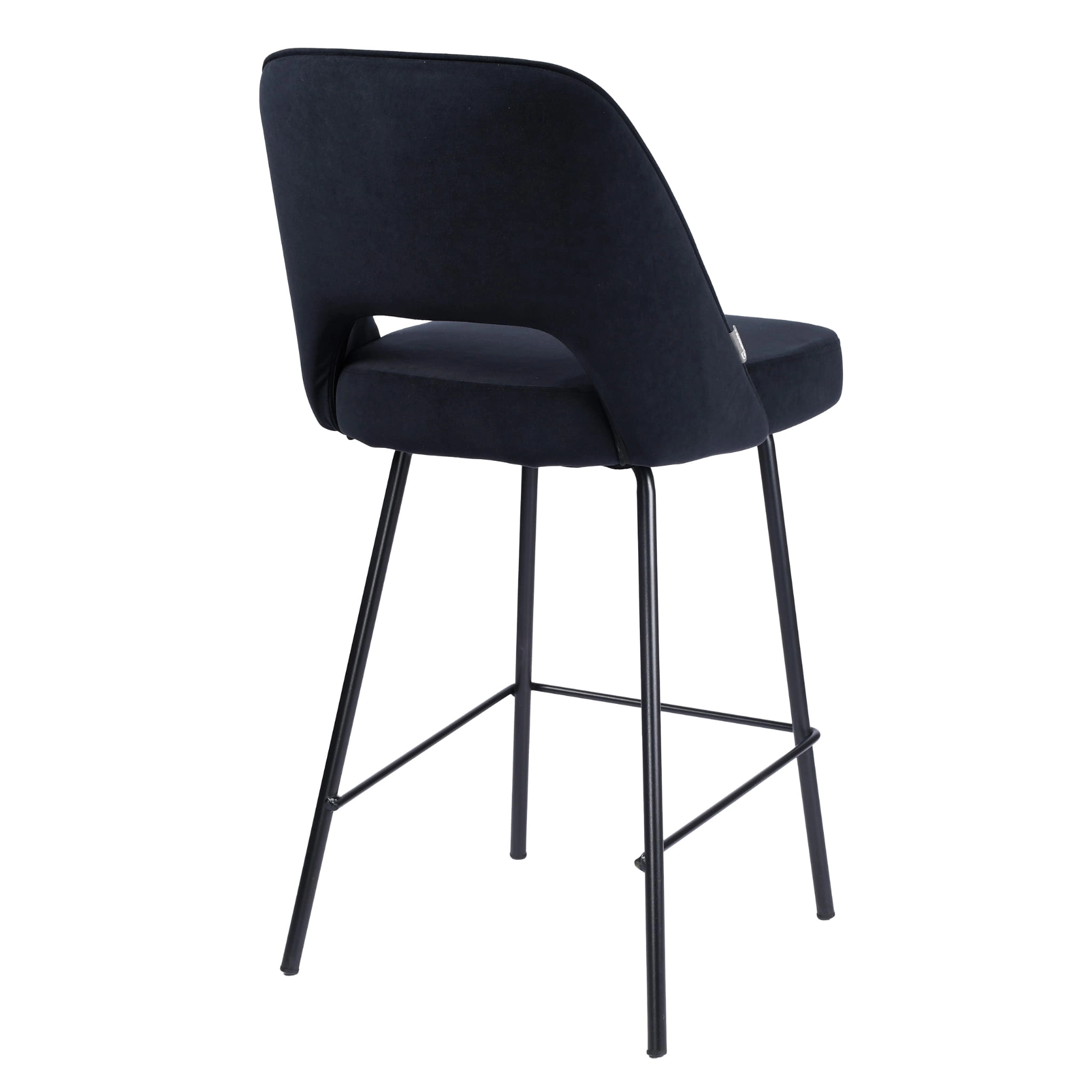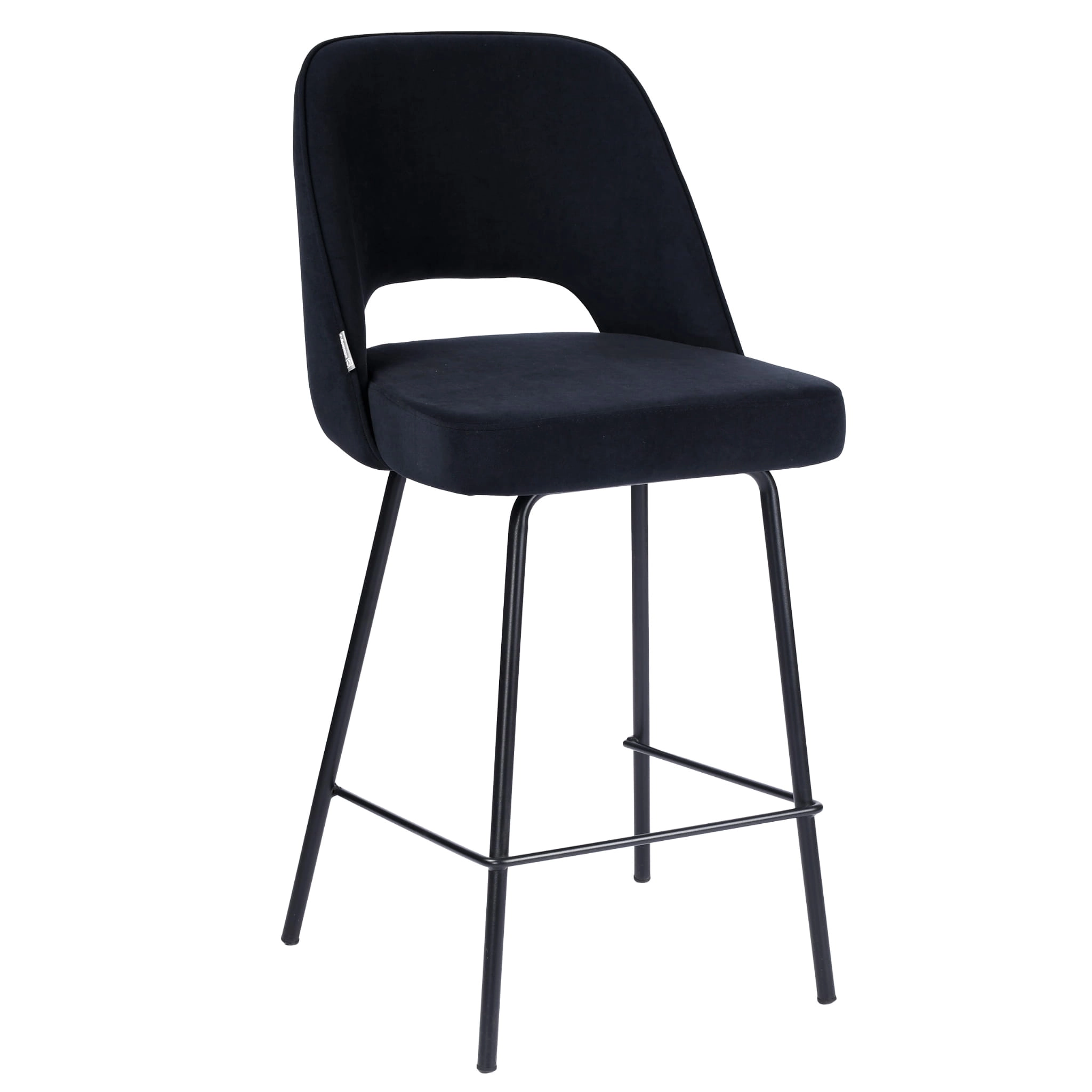 FERO to hoker tapicerowany, który łączy miękką tkaninę velvet, czarną kolorystykę i smukły metalowy stelaż. Dzięki wysokości siedziska 65 cm model dobrze sprawdzi się jako hoker do wyspy kuchennej, przy półwyspie lub blacie barowym. Oparcie z charakterystycznym prześwitem nadaje bryle lekkości, a podnóżek zwiększa komfort podczas codziennych posiłków, rozmów przy kawie i spotkań w domowej kuchni.