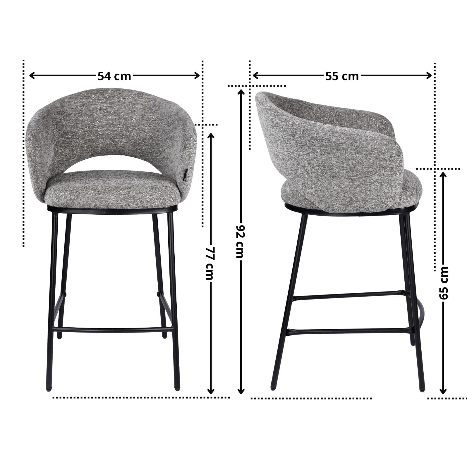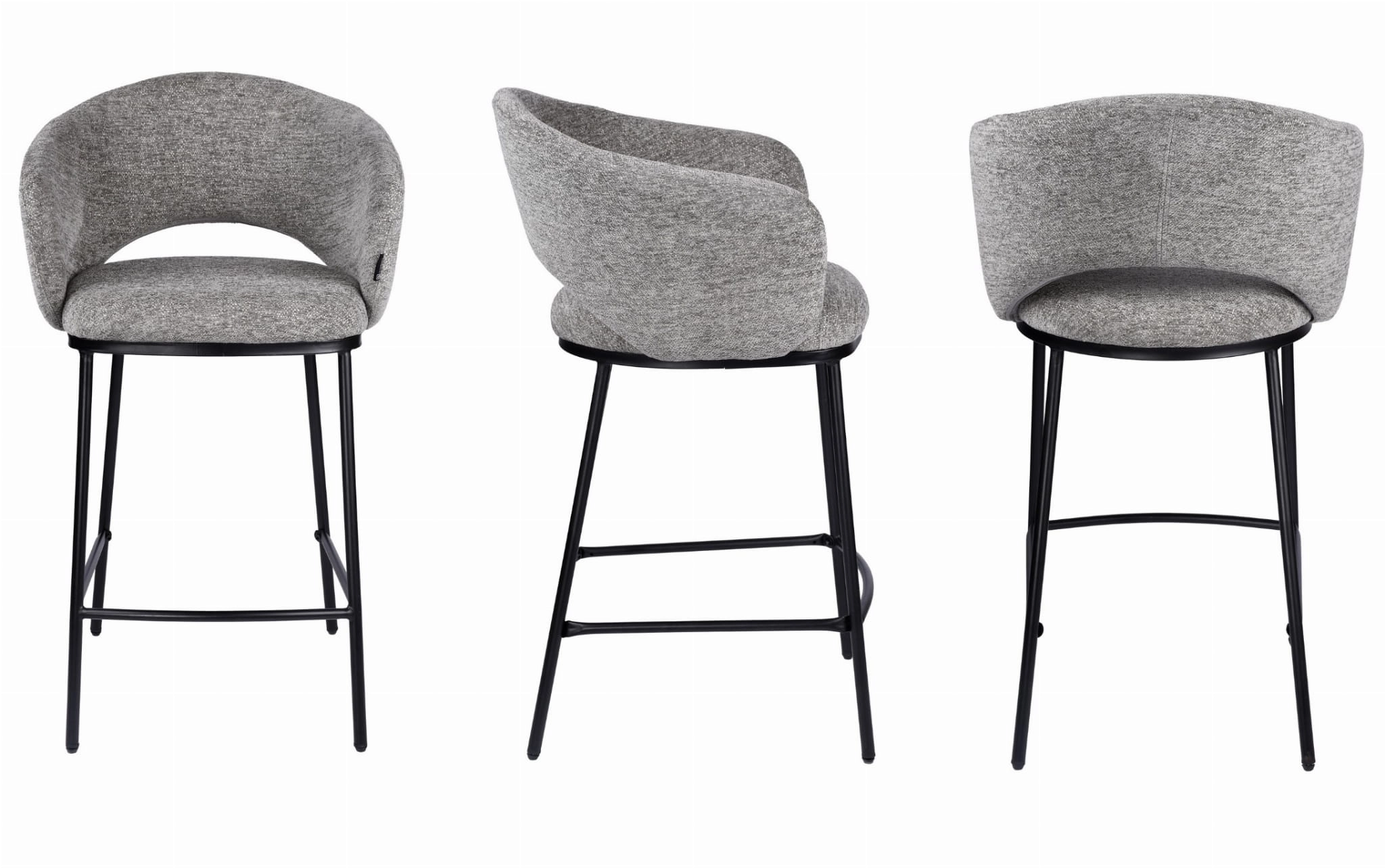 LUMOR to hoker tapicerowany, który łączy komfort siedzenia z nowoczesną, dopracowaną formą. Szara tkanina Raven 7 oraz czarny metalowy stelaż tworzą ponadczasowe zestawienie, które dobrze wpisuje się zarówno w jasne, jak i ciemniejsze aranżacje. To funkcjonalny hoker do wyspy kuchennej, który sprawdzi się wszędzie tam, gdzie liczy się wygoda, stabilność i spójny wygląd całej strefy przy blacie.