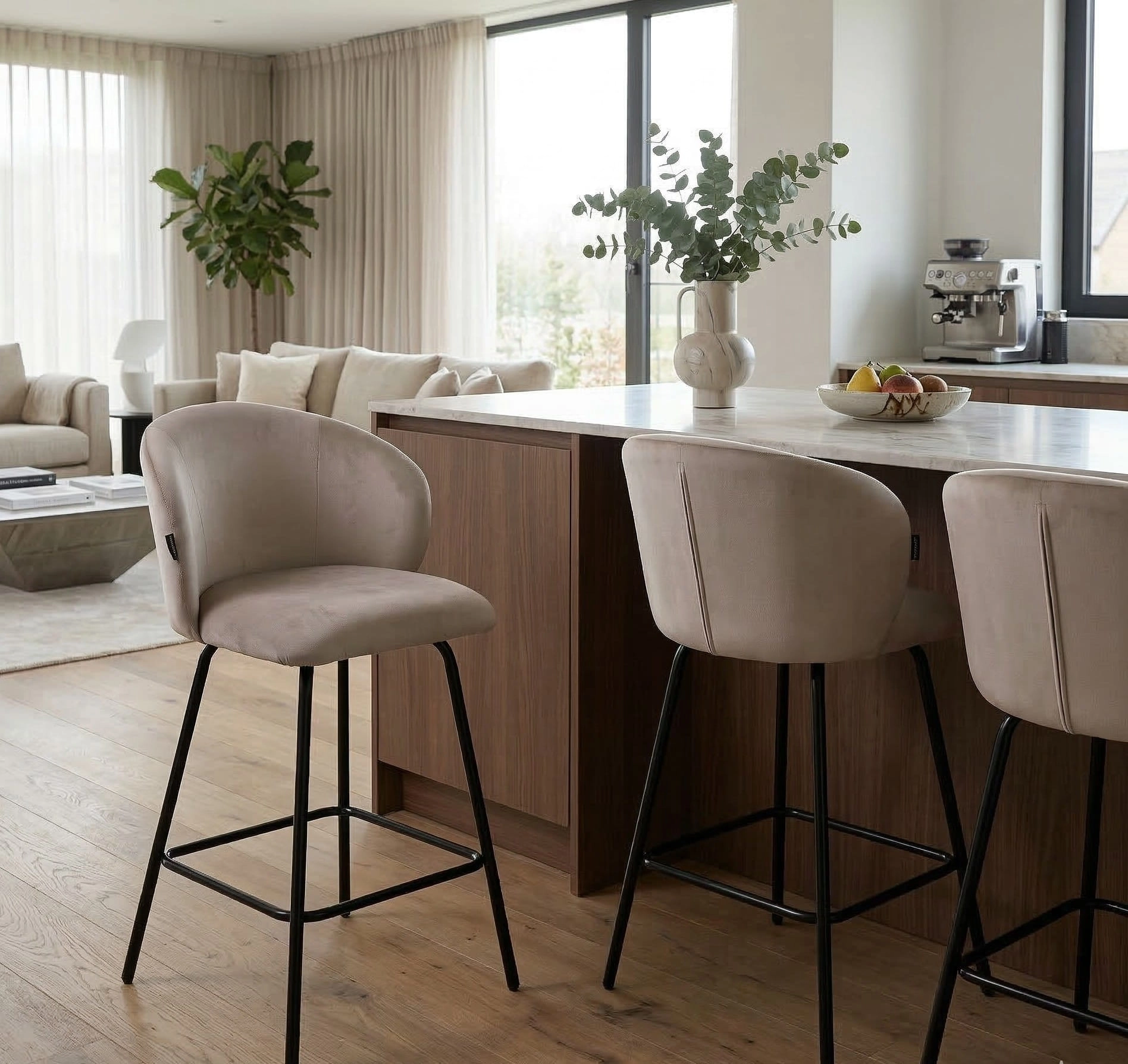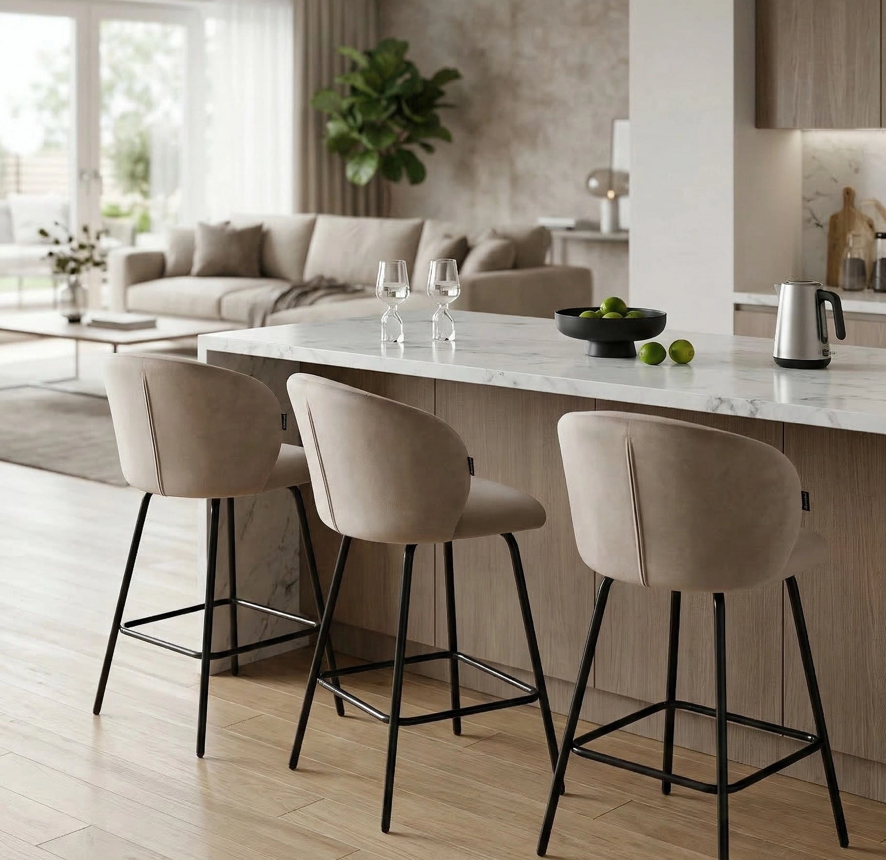 ✨ Beżowy hoker welurowy NEMI 65 cm — elegancja, komfort i styl do nowoczesnej kuchni