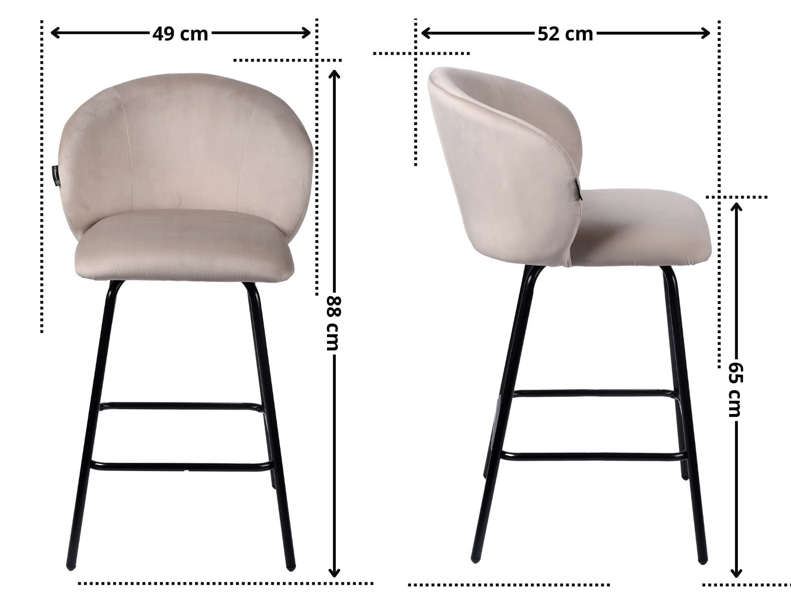 - Wysokość siedziska 65 cm – idealna do wysp kuchennych i blatów