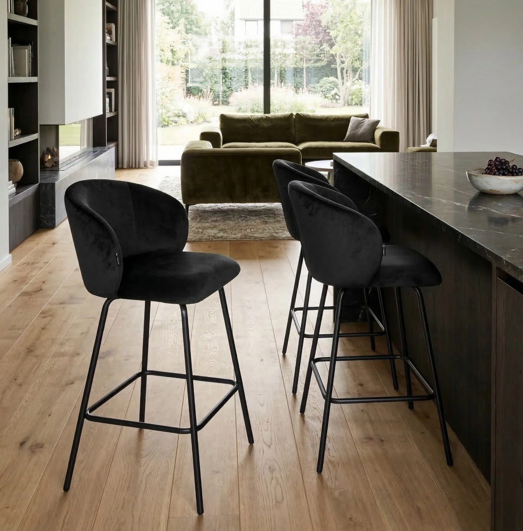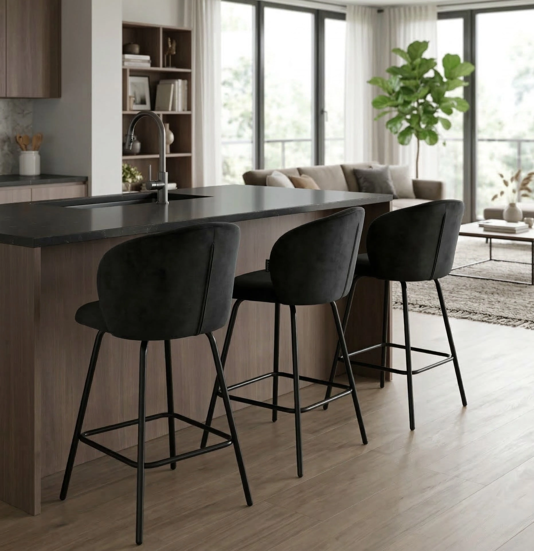 ✨ Czarny hoker welurowy NEMI 65 cm — elegancja i wygoda do nowoczesnych wnętrz