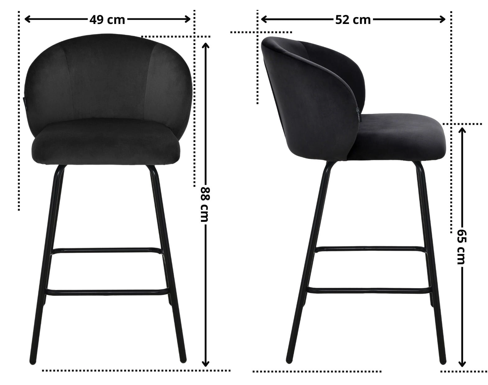 Hoker krzesło barowe z podnóżkiem NEMI velvet czarne G-77