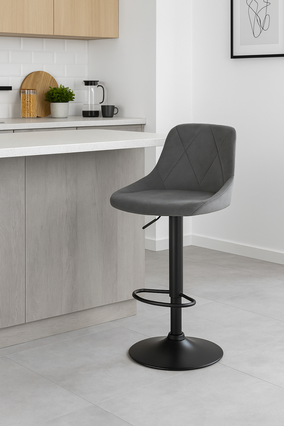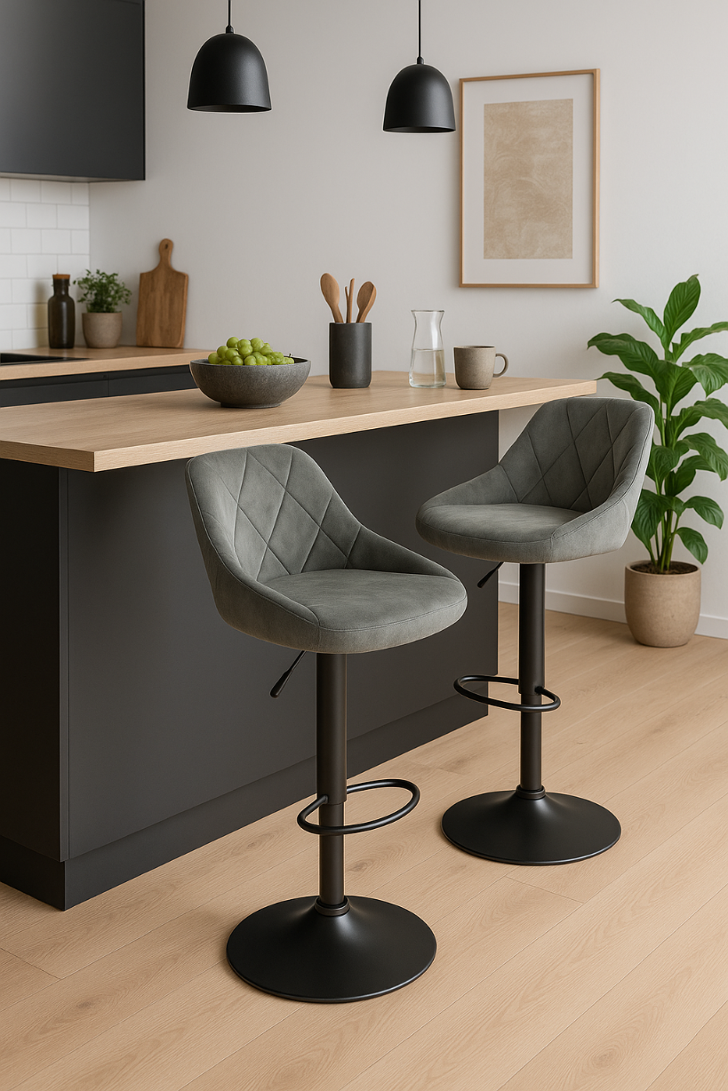 ✨ Hoker popielaty velvet H101 z regulacją wysokości – styl i wygoda do kuchni i jadalni