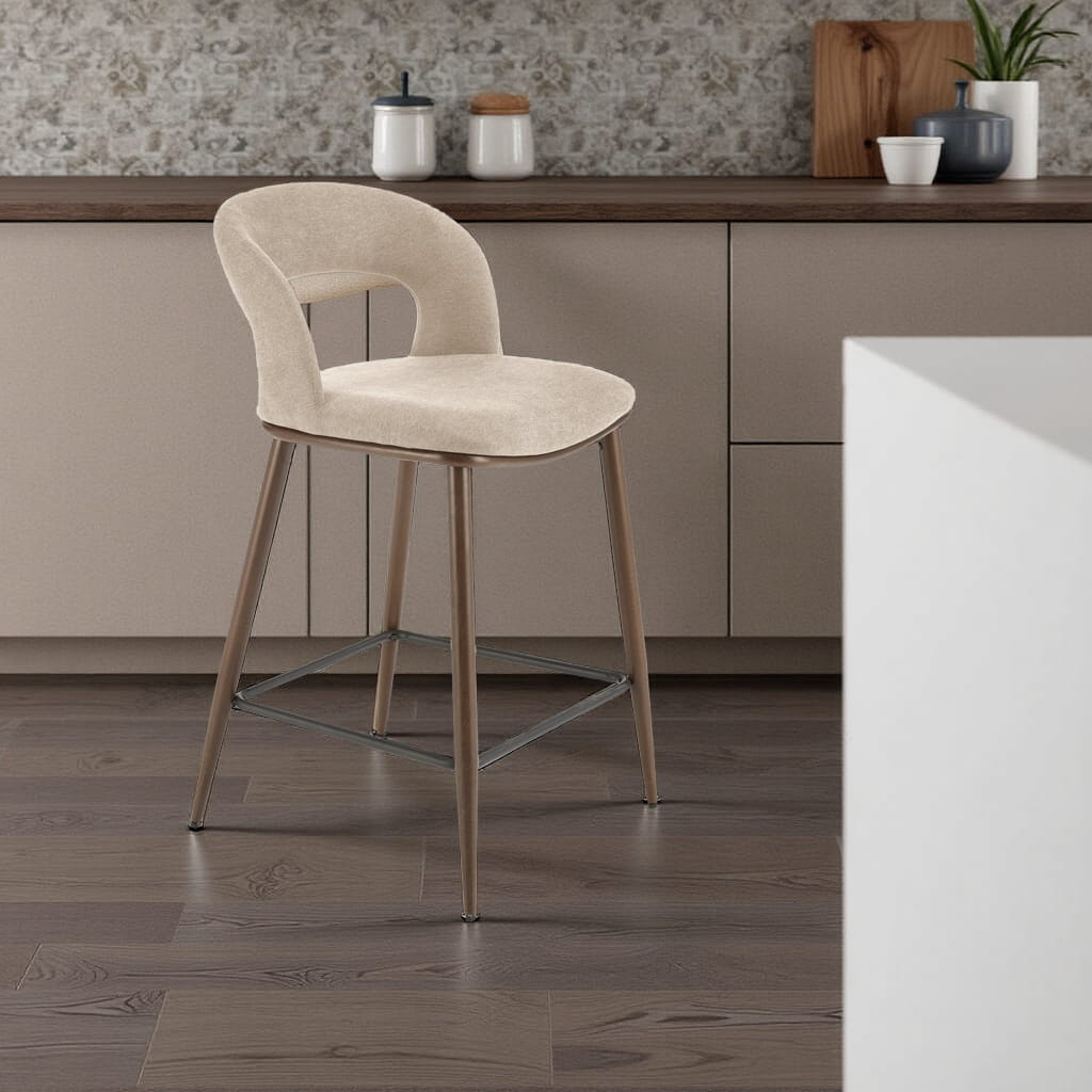 Hoker tapicerowany H114 to połączenie wygody i eleganckiego designu – idealny wybór do nowoczesnych i klasycznych wnętrz. Jego beżowe siedzisko w połączeniu z brązowym stelażem w odcieniu orzecha tworzy harmonijną kompozycję, która świetnie wpisuje się w modną aranżację kuchni lub jadalni. Dzięki odpowiedniej wysokości i miękkiej tapicerce, hoker kuchenny zapewnia komfort codziennego użytkowania – niezależnie czy pijesz poranną kawę, czy podejmujesz gości.