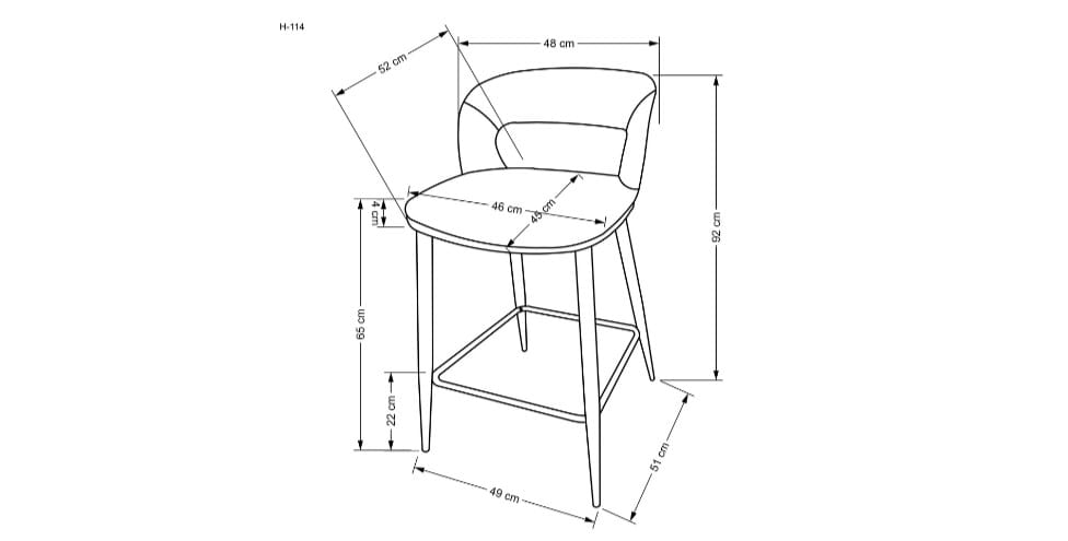 Model H114 świetnie sprawdzi się jako hoker do wyspy kuchennej, hoker do jadalni, a nawet jako krzesło barowe do domowego barku. Dzięki uniwersalnej wysokości (65 cm do siedziska) pasuje do większości standardowych blatów kuchennych, zapewniając wygodną pozycję podczas codziennego użytkowania.