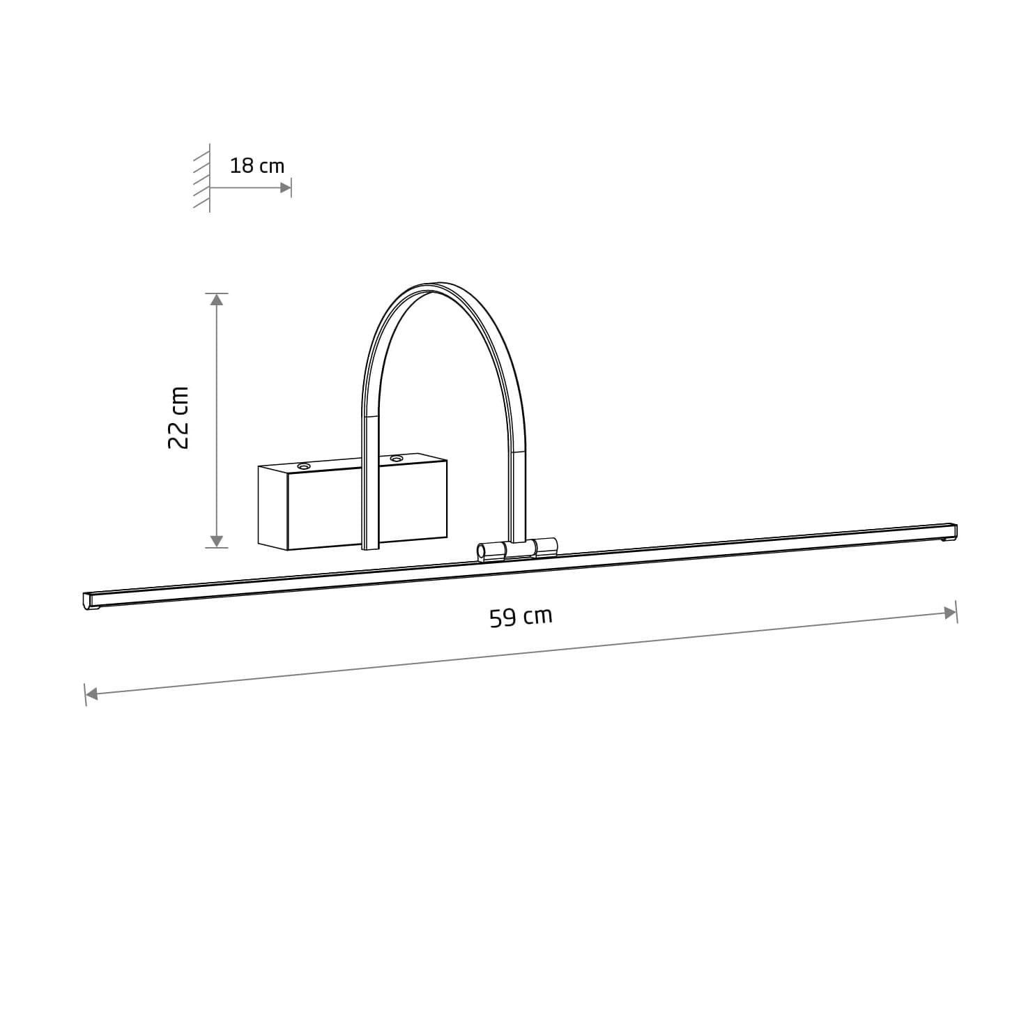 - Długość 59 cm – idealna proporcja do oświetlania nawet dużych ram obrazów, zapewniając im pełne i efektowne doświetlenie.