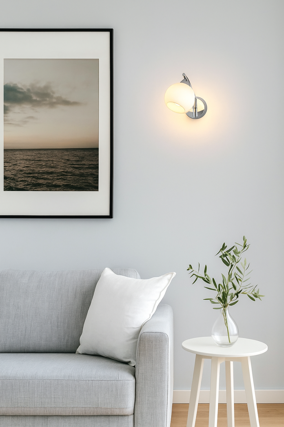 Kinkiet AMOS srebrny to doskonały wybór dla osób, które cenią prostotę, styl i jakość wykonania. Połączenie stalowej podstawy i szklanego klosza tworzy harmonijną całość, która pasuje do niemal każdego wnętrza. Subtelne srebrne wykończenie dodaje lekkości i elegancji, a jednocześnie pięknie odbija światło, tworząc przyjemny nastrój.