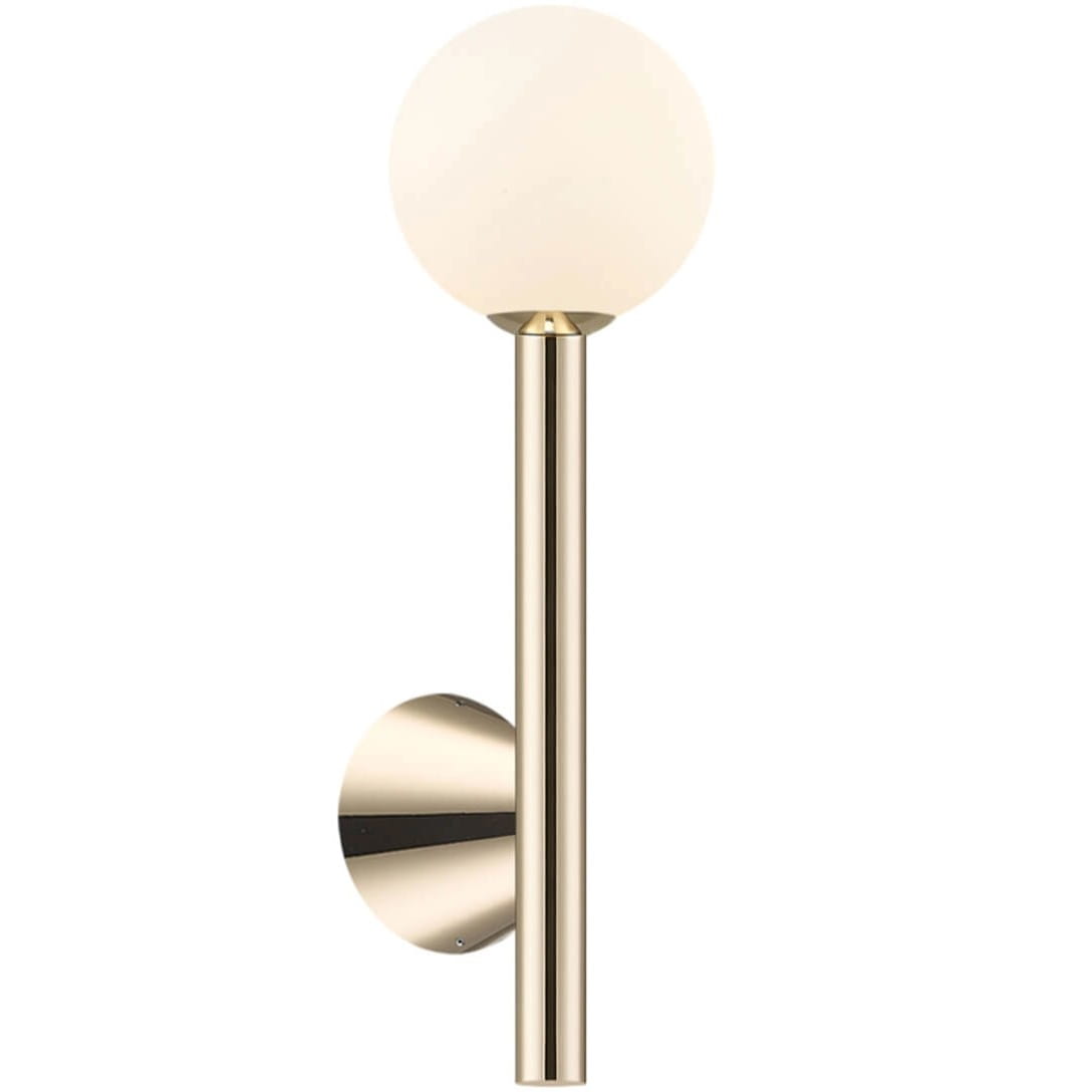 Kinkiet ARCTURUS złoty to połączenie prostoty, elegancji i funkcjonalności, które podkreśli charakter każdego wnętrza. Złota konstrukcja w połączeniu z białym szklanym kloszem tworzy efektowne źródło światła, idealne do nowoczesnych i glamour aranżacji. Lampa świetnie sprawdzi się jako oświetlenie boczne przy lustrze lub subtelny akcent dekoracyjny w strefie relaksu.