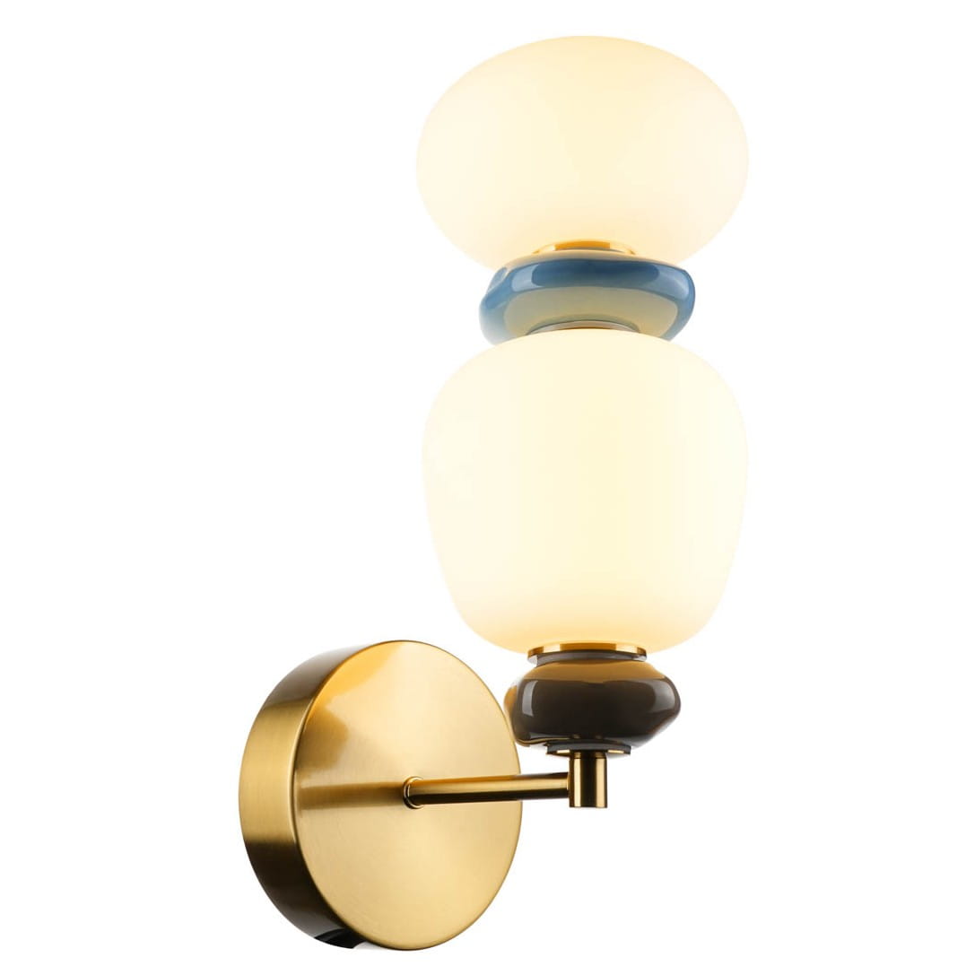 Szukasz sposobu na nastrojowy wieczór? Prezentowany model to designerski, złoty kinkiet LED, który doskonale łączy nowoczesną technologię z wyrafinowanym stylem. Jego unikalna forma, łącząca złoto, opalowe klosze i kolorową ceramikę, sprawia, że jest to nie tylko oświetlenie ścienne, ale i prestiżowy element dekoracyjny, który natychmiast przyciąga wzrok.