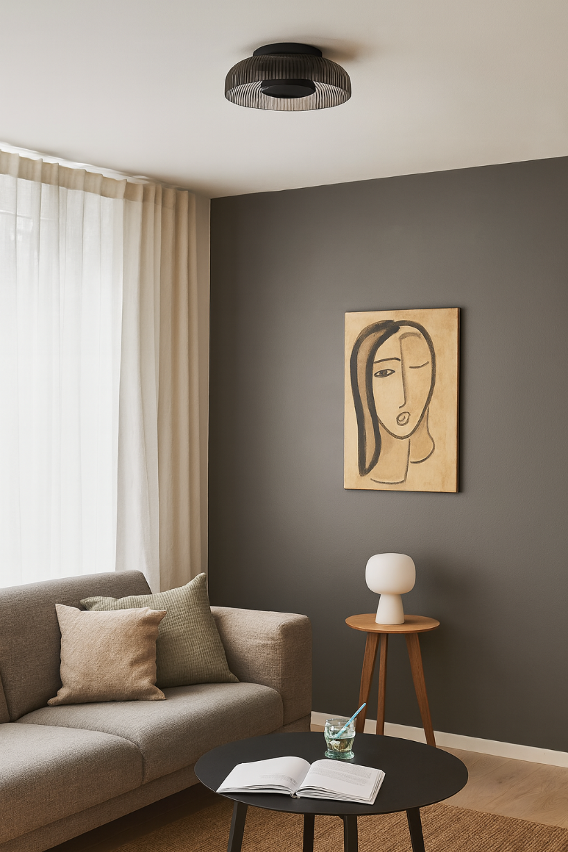 PASSO subtelnie porządkuje przestrzeń światłem: jako kinkiet podkreśli fakturę ściany lub ramę lustra, a jako plafon doświetli korytarz, wejście czy strefę przy szafie. Miękka ciepła biel 3000K tworzy przyjazny nastrój, sprzyjający odpoczynkowi i codziennym rytuałom. Minimalistyczna, szara forma świetnie łączy się z aranżacjami nowoczesnymi, skandynawskimi, japandi oraz industrialnymi.