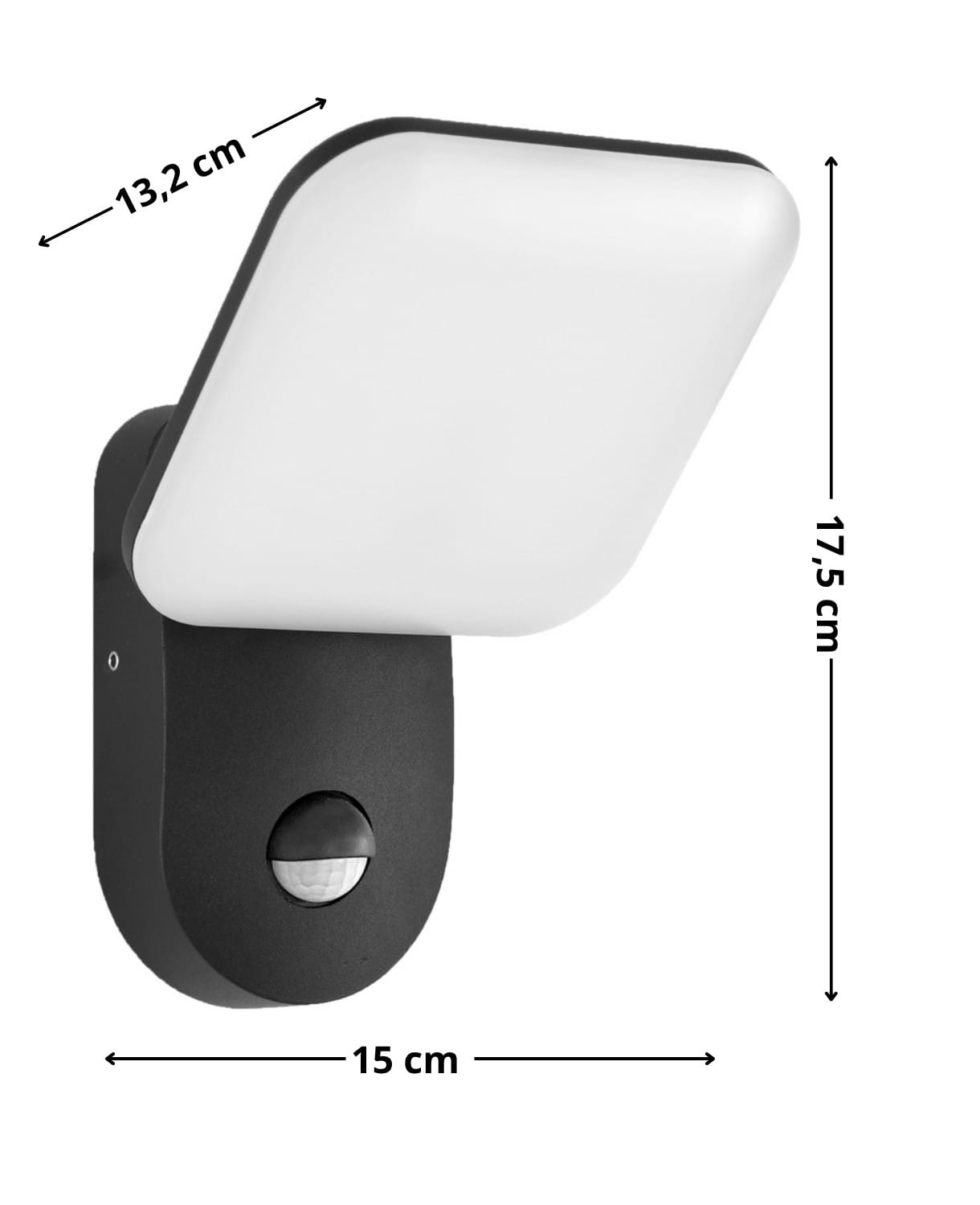 Minimalistyczna forma, czarne matowe wykończenie i wysoka jakość wykonania czynią tę lampę idealną zarówno do nowoczesnych budynków, jak i minimalistycznych ogrodzeń czy elewacji. Czujnik ruchu podnosi komfort użytkowania oraz zwiększa bezpieczeństwo – światło włączy się tylko wtedy, gdy jest potrzebne.