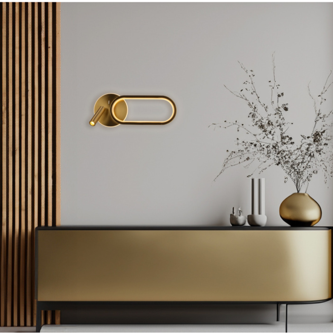 ✨ Złoty kinkiet LED owalny z regulacją barwy światła do sypialni