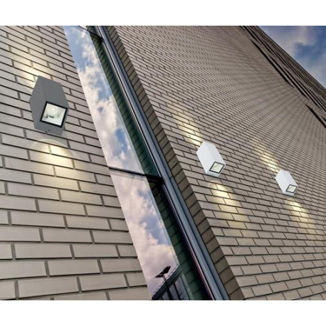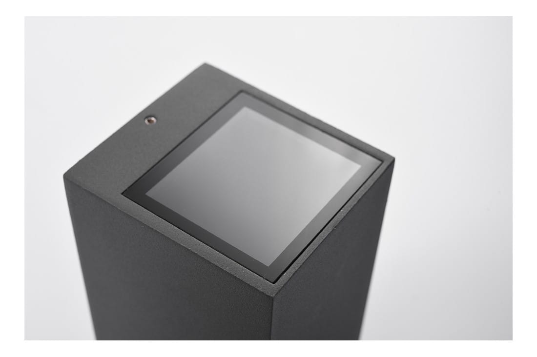 Dzięki wysokiej klasie szczelności IP54 oraz trwałej konstrukcji z metalu i szkła, oprawa jest odporna na wilgoć, kurz, deszcz i promieniowanie UV. Jej prosta, geometryczna forma sprawia, że pasuje do większości nowoczesnych elewacji – zarówno w domach jednorodzinnych, jak i budynkach komercyjnych.