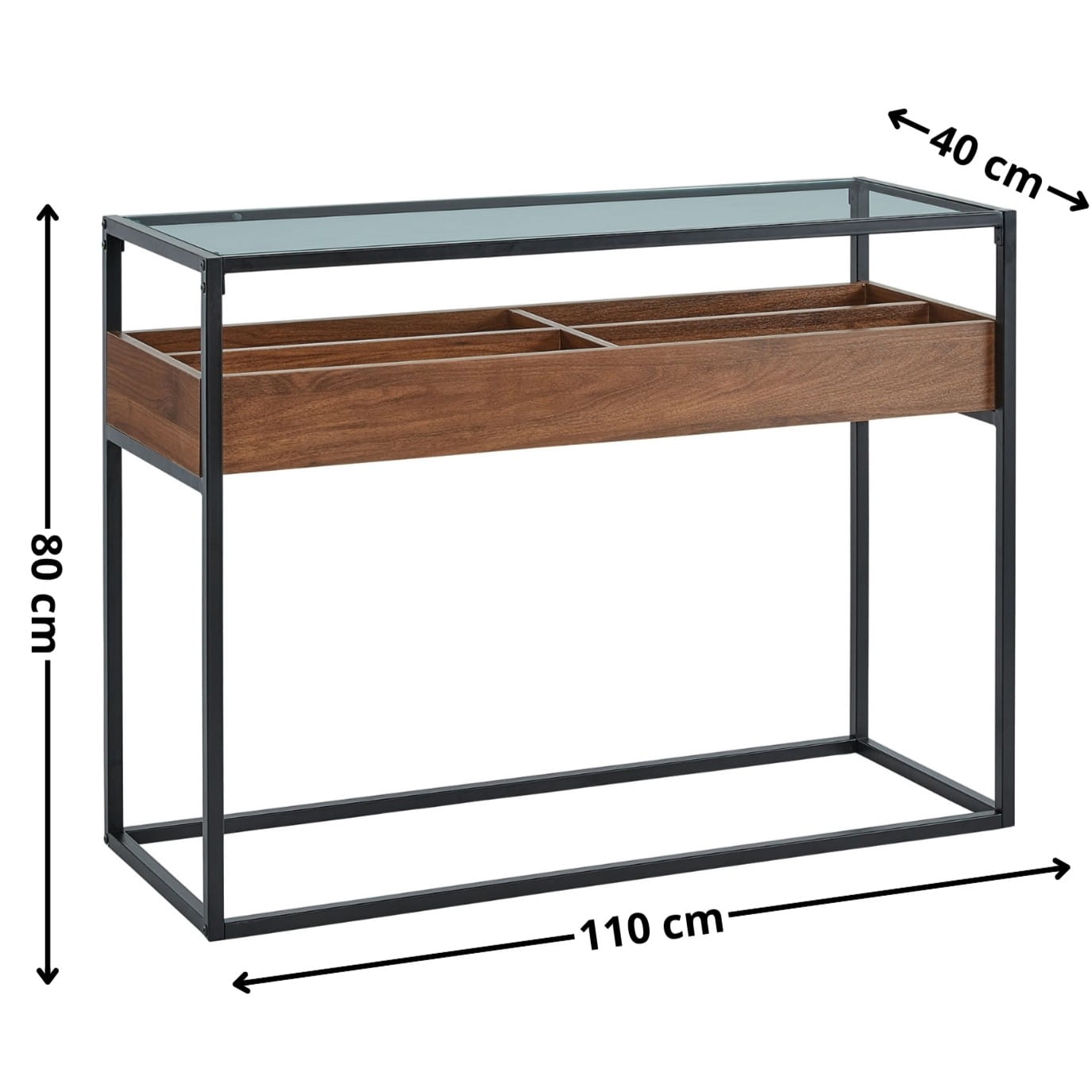 Najważniejsze frazy kluczowe SEO zastosowane w opisie: konsola do przedpokoju, konsola loftowa, nowoczesna konsola orzechowa, konsola industrialna czarna, konsola do salonu nowoczesna, meble industrialne, nowoczesny stół pomocniczy, designerska konsola z metalu i szkła, konsola styl loft.
