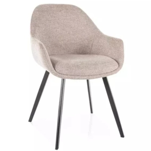 Krzesło VINTO beżowe to perfekcyjne połączenie komfortu, trwałości i eleganckiego wyglądu. Jego beżowa tapicerka z tkaniny Brego wprowadza do wnętrza ciepło i przytulność, a czarny metalowy stelaż dodaje nowoczesnego charakteru.