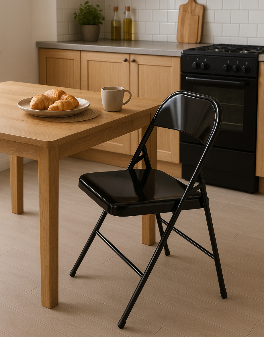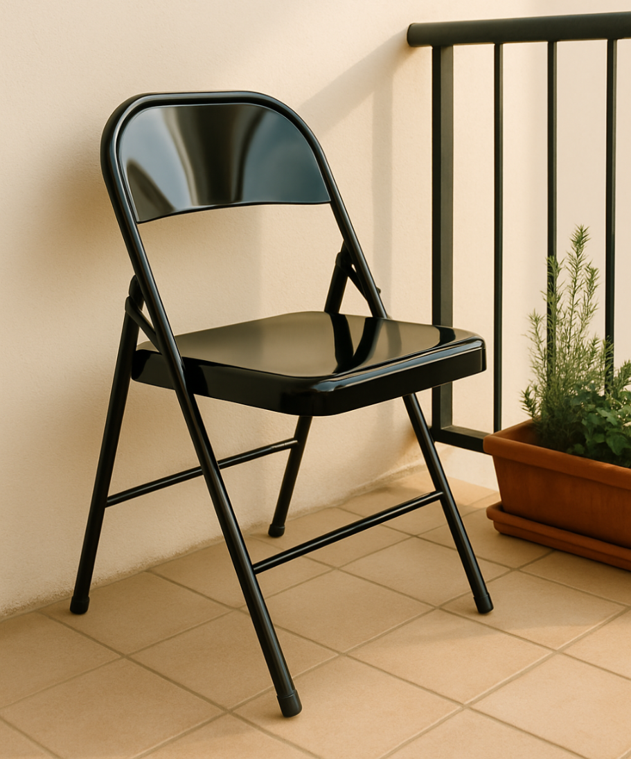 To krzesło metalowe składane sprawdzi się nie tylko w domowych wnętrzach, ale też w biurach, salach konferencyjnych, szkołach, pracowniach czy podczas plenerowych wydarzeń. Minimalistyczna forma i klasyczna czerń doskonale odnajdą się w nowoczesnych oraz industrialnych aranżacjach. Okrągłe, proste nogi nadają konstrukcji lekkości, a jednocześnie zapewniają stabilność użytkowania.