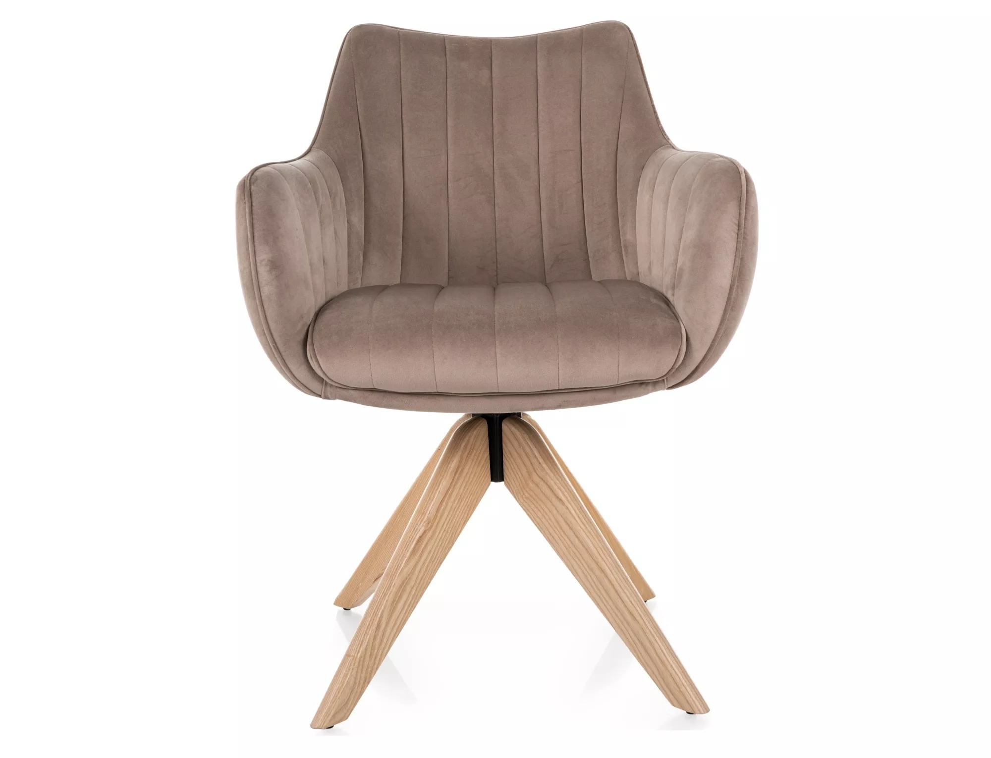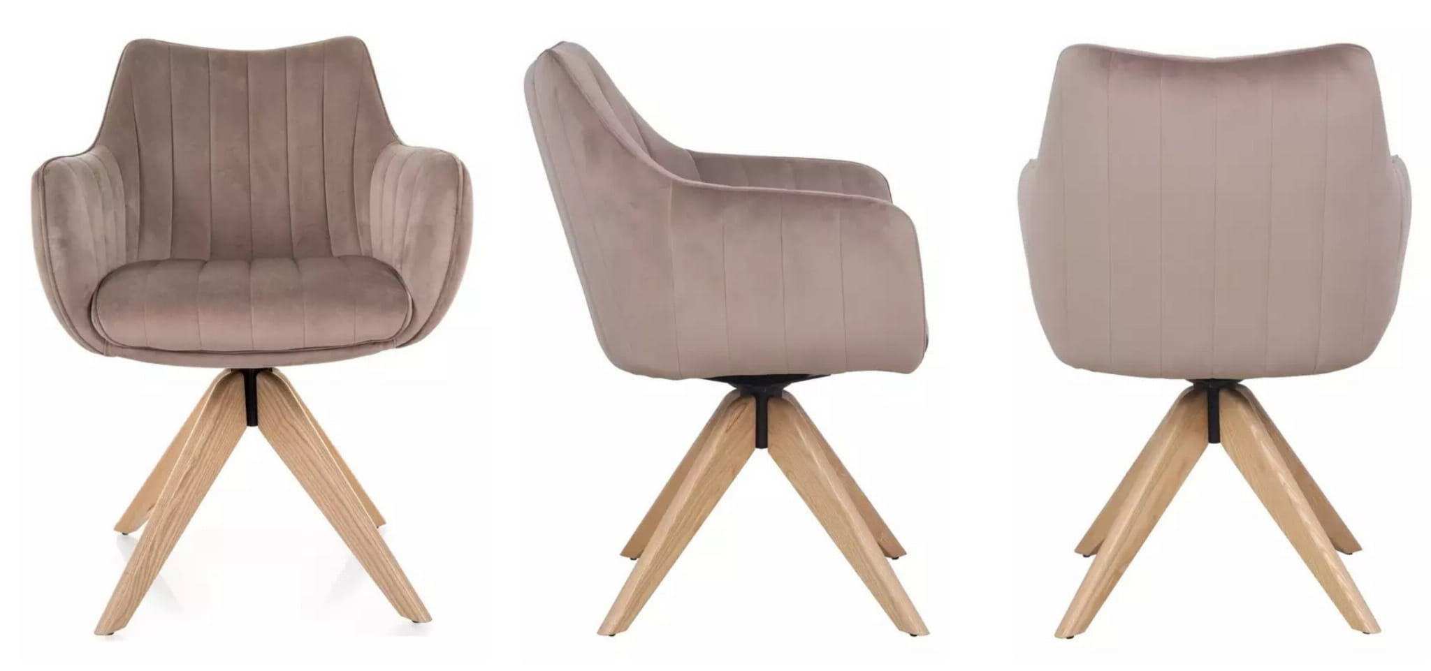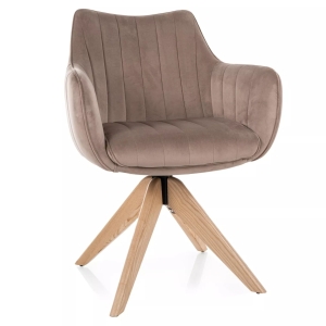 Krzesło obrotowe AZALIA D to elegancka propozycja dla osób ceniących wygodę, funkcjonalność i design inspirowany naturą. Beżowa tapicerka velvet w połączeniu z drewnianym stelażem z jesionu w kolorze dąb to idealny wybór do wnętrz w stylu skandynawskim, japandi i klasycznym. Funkcja auto-return 180° zapewnia powrót siedziska do pierwotnej pozycji po wstaniu – to wygoda i elegancja w jednym.
