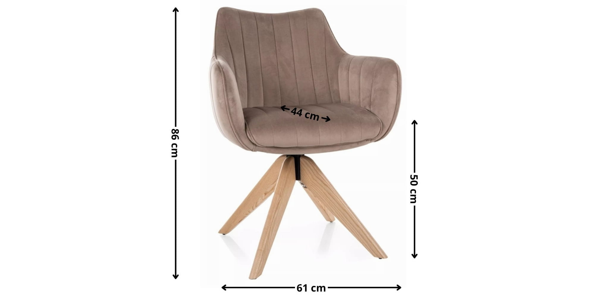Postaw na funkcjonalność i ponadczasowy styl z krzesłem AZALIA D. Beżowa tapicerka z aksamitnej tkaniny nadaje mu miękkości i elegancji, a naturalne drewniane nogi z jesionu w kolorze dąb ocieplą każde wnętrze. Obrotowe siedzisko z funkcją auto-return gwarantuje wygodę użytkowania na co dzień – doskonale sprawdzi się przy stole w jadalni, toaletce czy biurku.