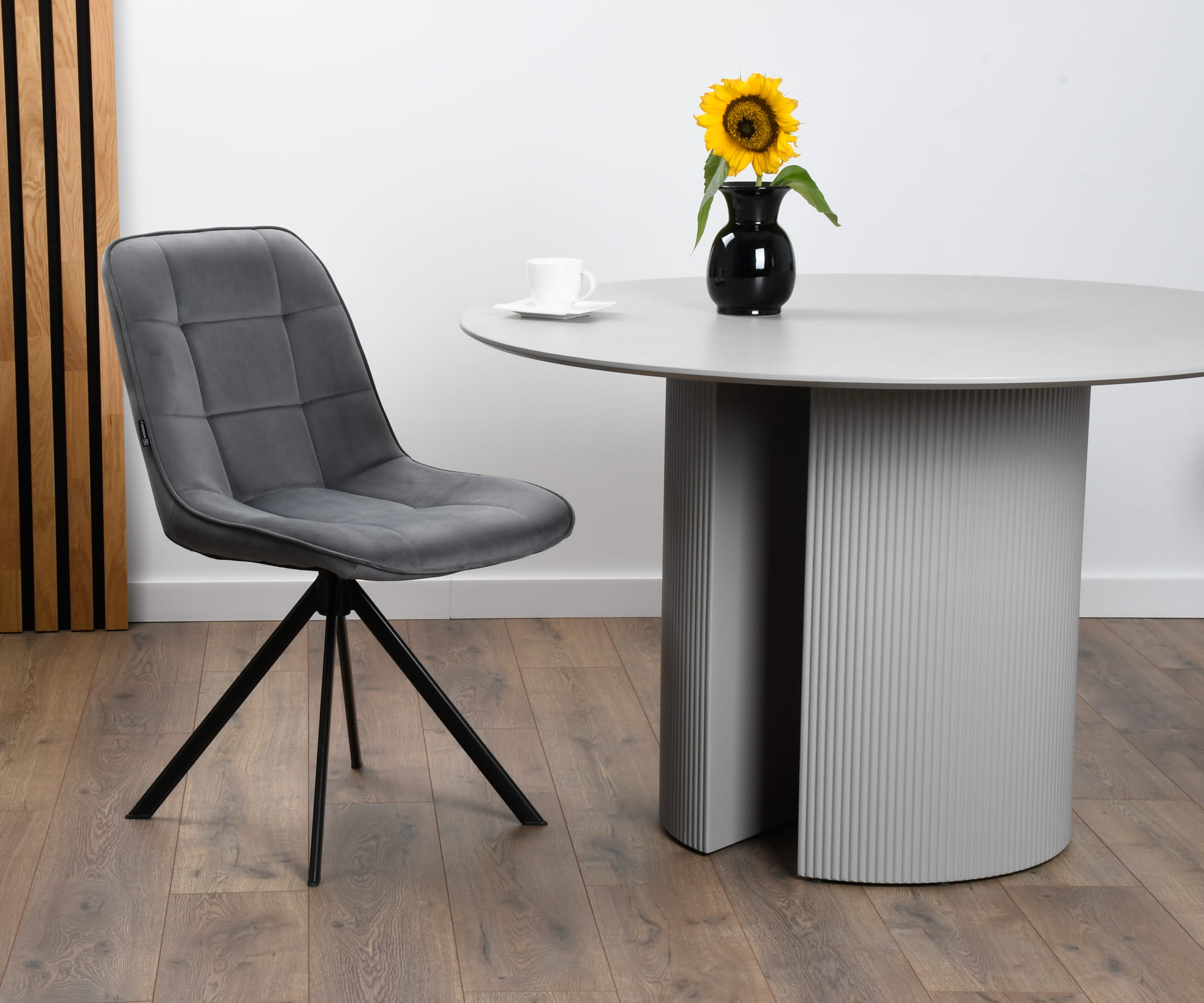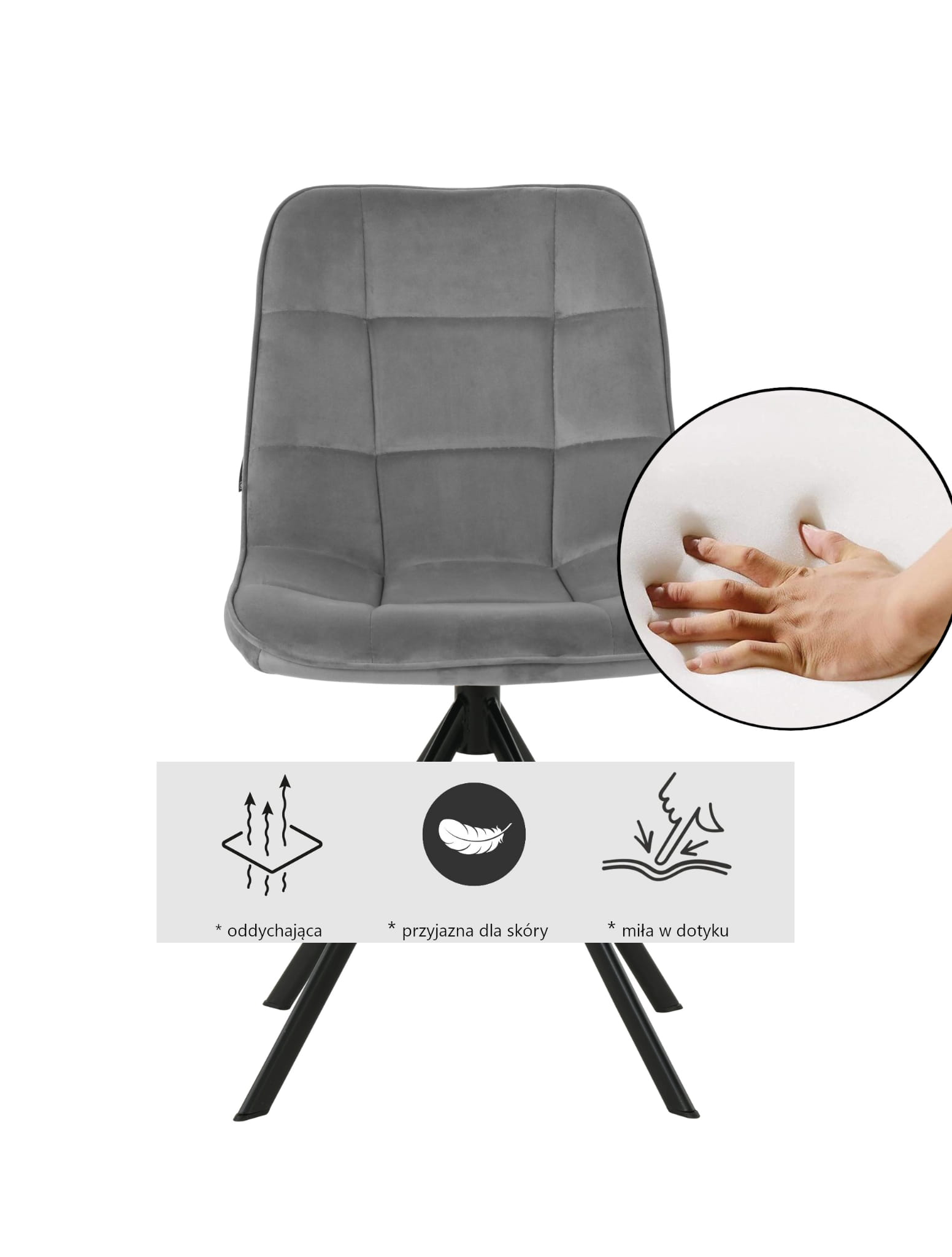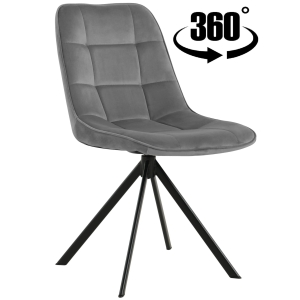 ✨Nowoczesne krzesło tapicerowane BATI – szary welur i obrotowa wygoda 360°