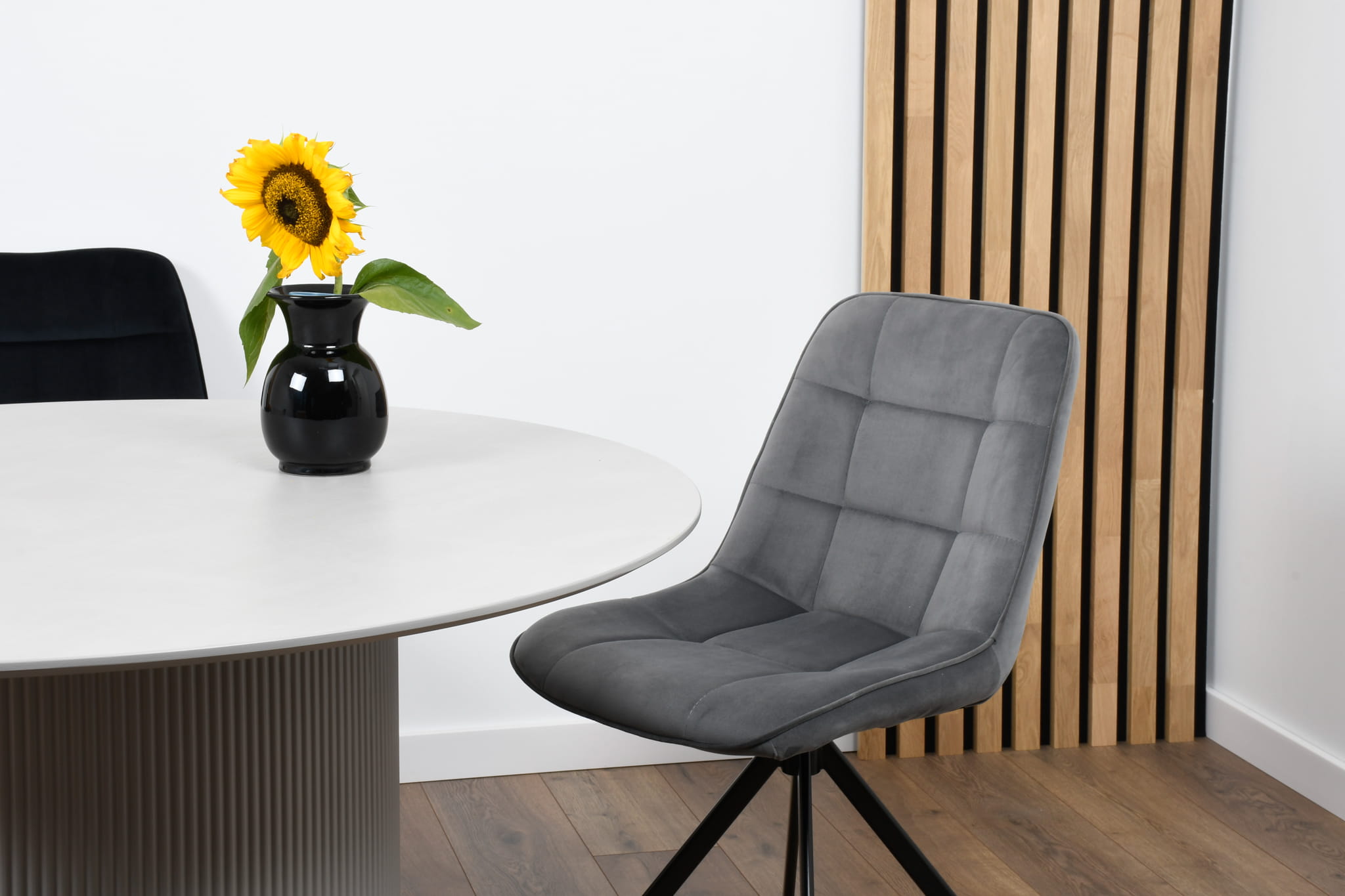 Szukasz wygodnego i eleganckiego krzesła, które podkreśli charakter Twojego wnętrza? Model BATI spełni wszystkie oczekiwania! Tapicerowane miękkim szarym welurem i osadzone na czarnym metalowym stelażu, prezentuje się niezwykle nowocześnie, a jednocześnie ponadczasowo. To idealny wybór do wnętrz nowoczesnych, glamour i minimalistycznych, gdzie liczy się estetyka i wygoda.