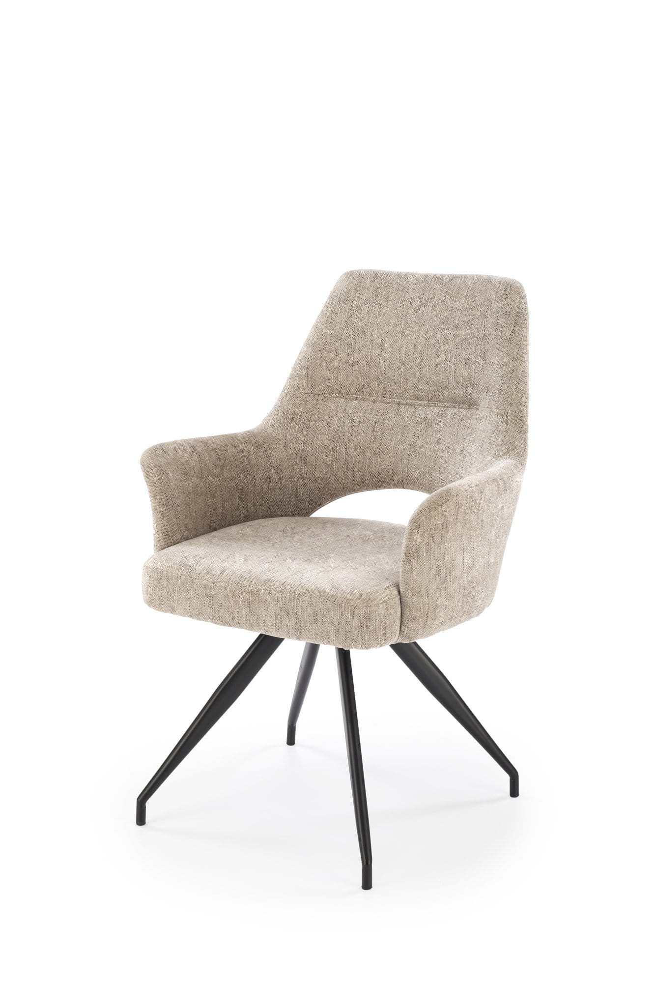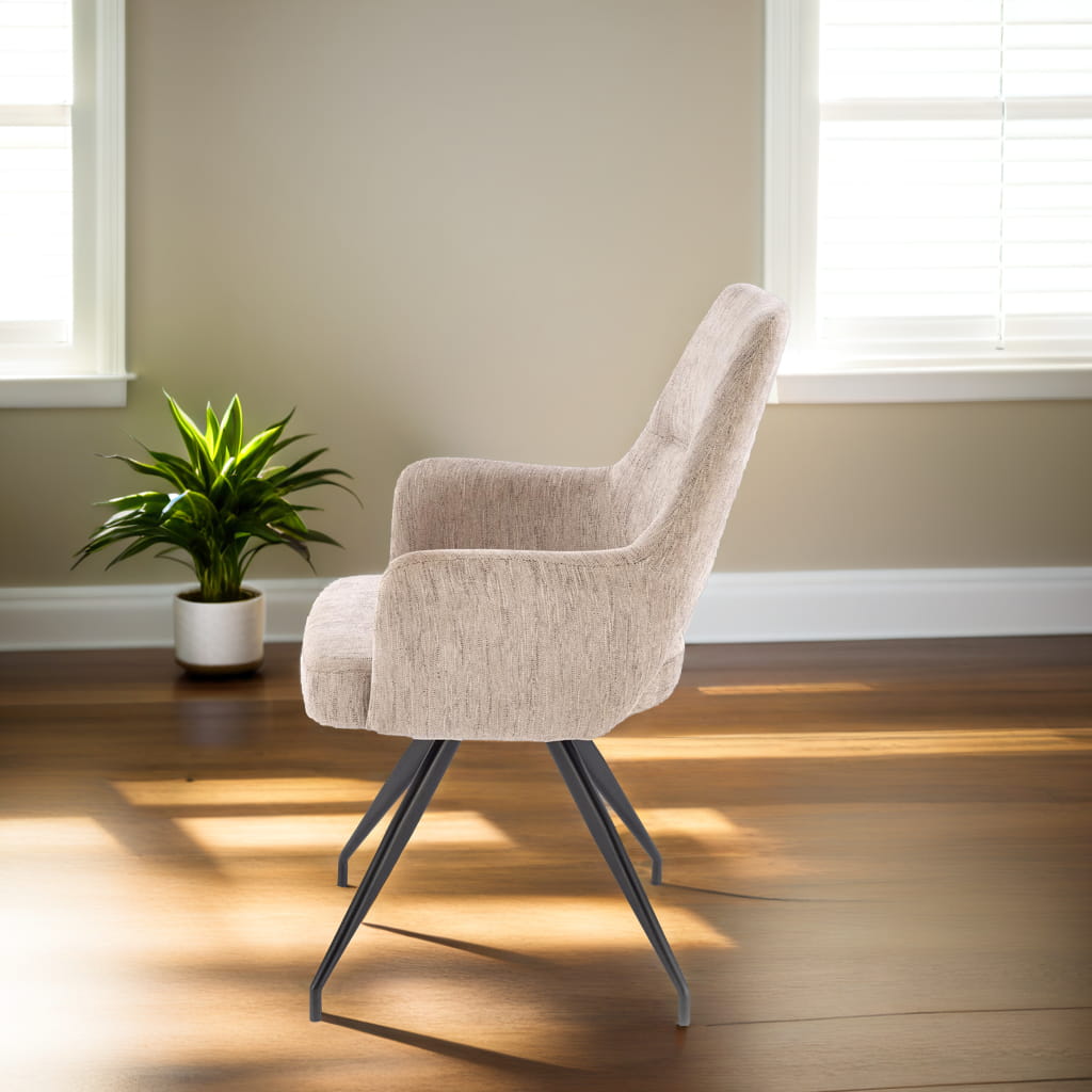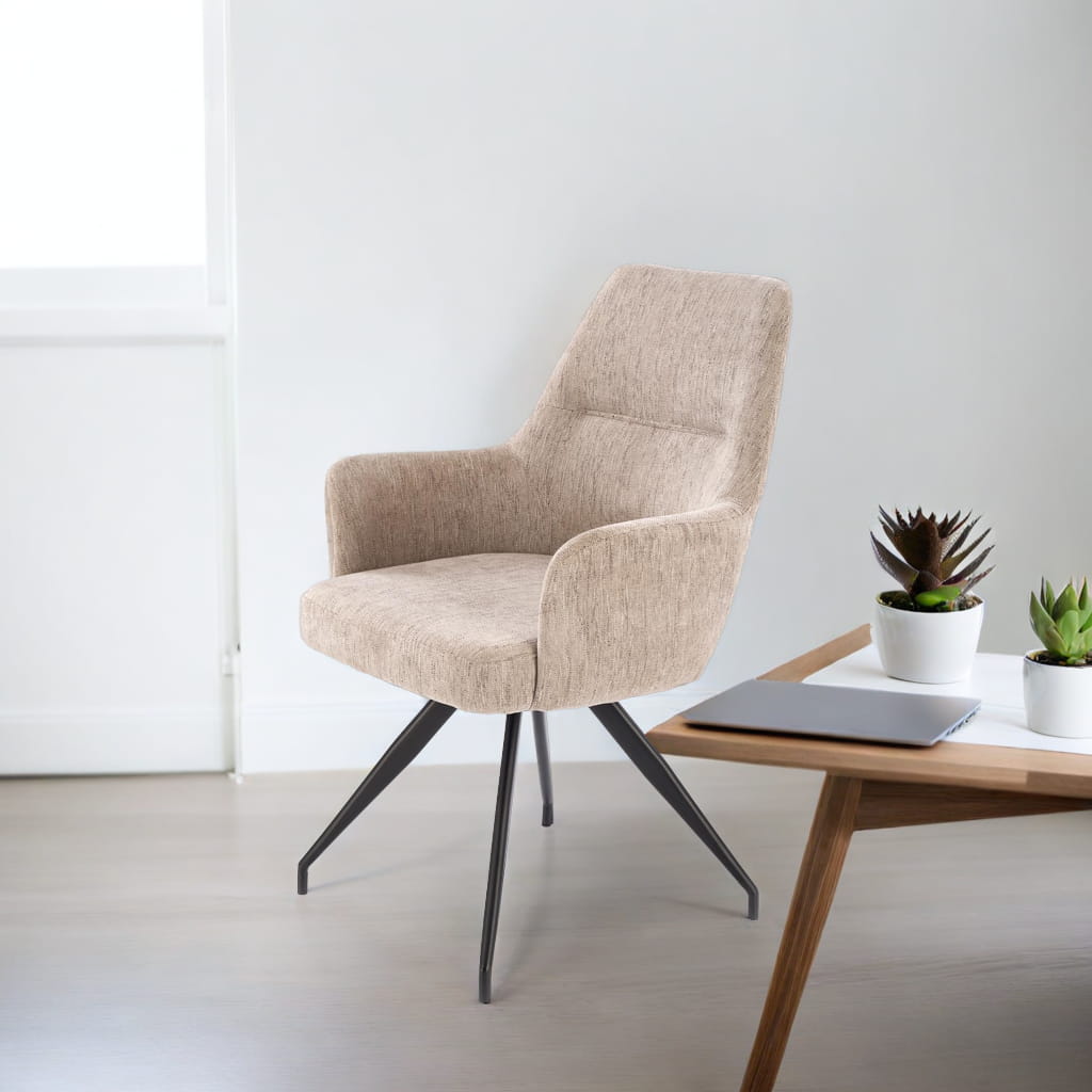 Poznaj krzesło tapicerowane obrotowe K542 w modnym beżowym kolorze ODIN#28. Ten elegancki mebel to idealne połączenie komfortu, stylu i funkcjonalności. Mechanizm obrotowy 180° z funkcja powrotu zapewnia wygodę podczas rozmów, pracy czy odpoczynku, a wysokie oparcie z dekoracyjnym przeszyciem dba o ergonomiczne wsparcie dla pleców. Zintegrowane podłokietniki zwiększają komfort użytkowania, a czarny metalowy stelaż gwarantuje stabilność i trwałość.