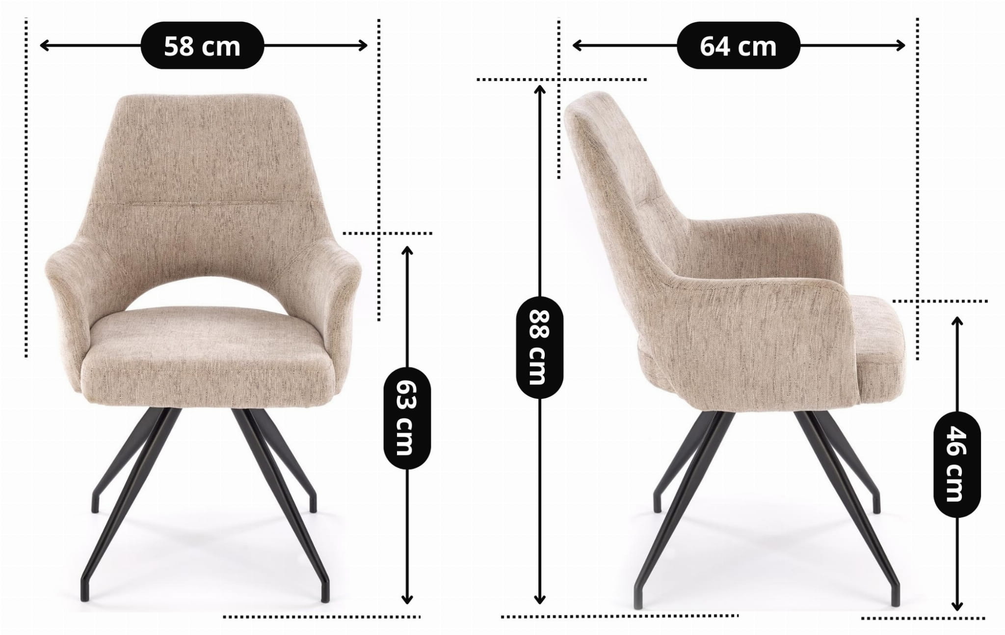 - Wysokość do siedziska: 46 cm