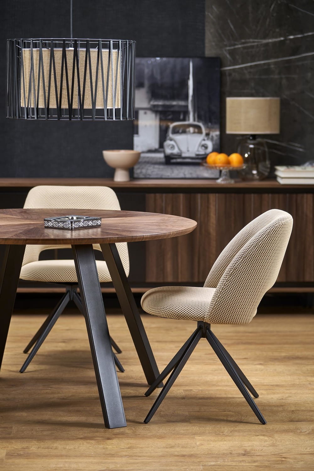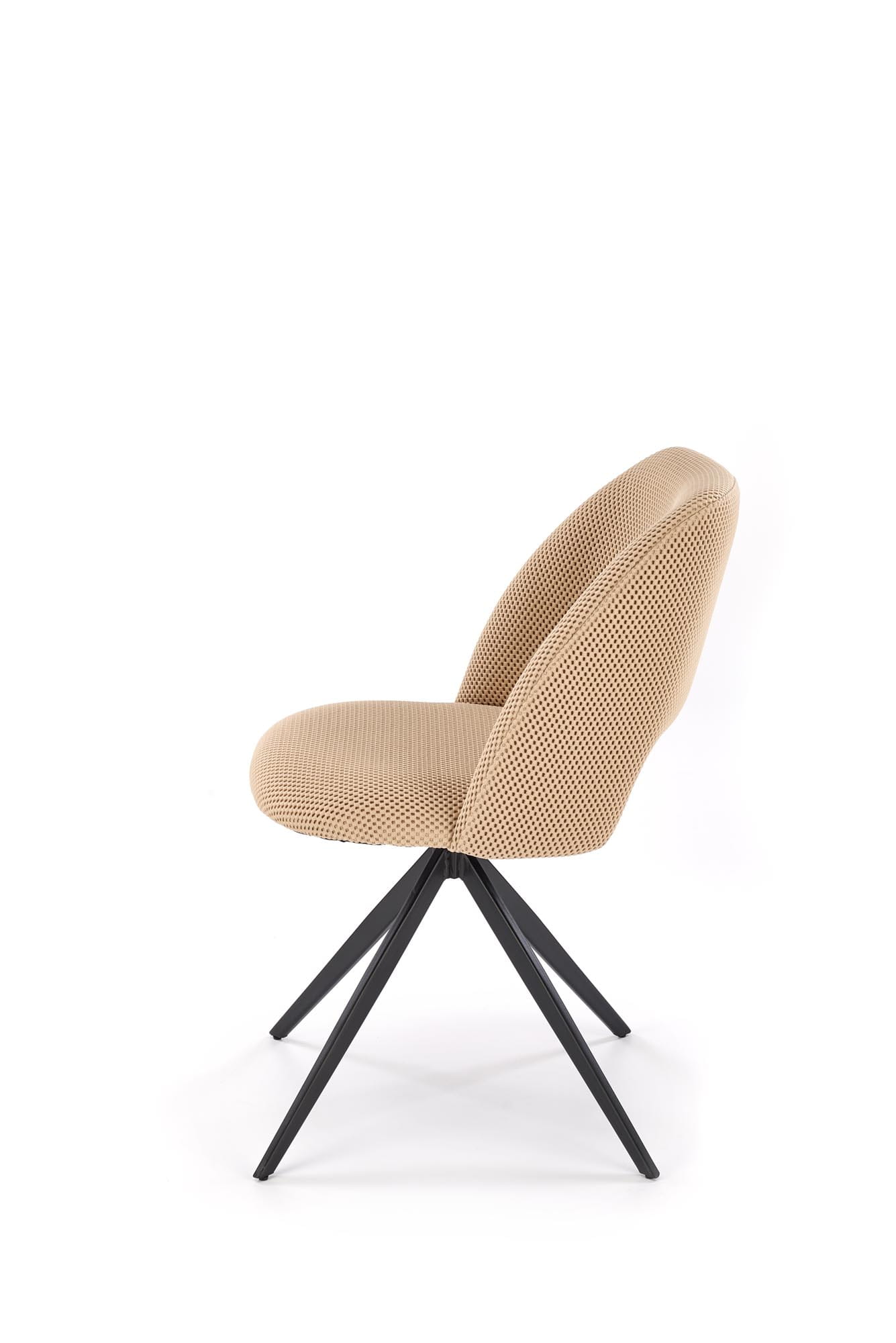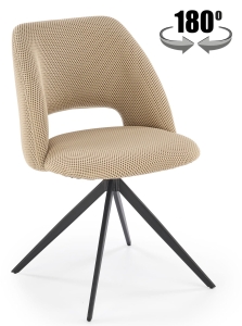 Krzesło obrotowe K546 w kolorze beżowym to idealne połączenie funkcjonalności i eleganckiego wyglądu. Wyróżnia się nowoczesnym designem, kompaktową formą oraz praktycznym mechanizmem obrotowym 180° z funkcją powrotu, co czyni je idealnym wyborem do codziennego użytkowania w różnych przestrzeniach. Tapicerka z tkaniny membranowej w modnym odcieniu beżu podkreśla jego uniwersalny charakter, a czarny, metalowy stelaż zapewnia stabilność i trwałość. Szukasz stylowego krzesła do jadalni, biura lub salonu? To właśnie ono!