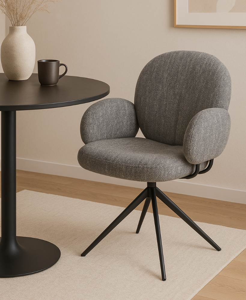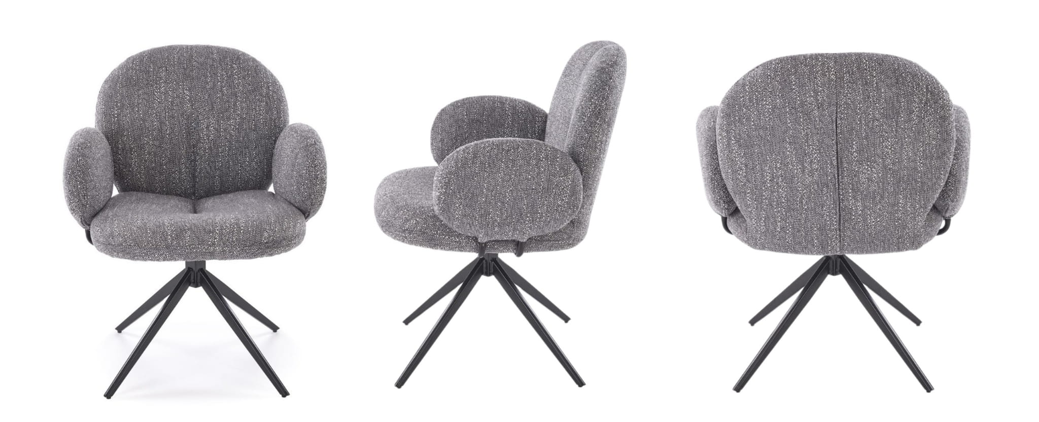 K568 to obrotowe krzesło, które świetnie łączy wygodę użytkowania z designerską formą. Popielata tapicerka wprowadza do wnętrza spokój i elegancję, a funkcja obracania sprawia, że sprawdzi się nie tylko w domowym gabinecie, ale też przy toaletce czy jako dodatkowe siedzisko w salonie.