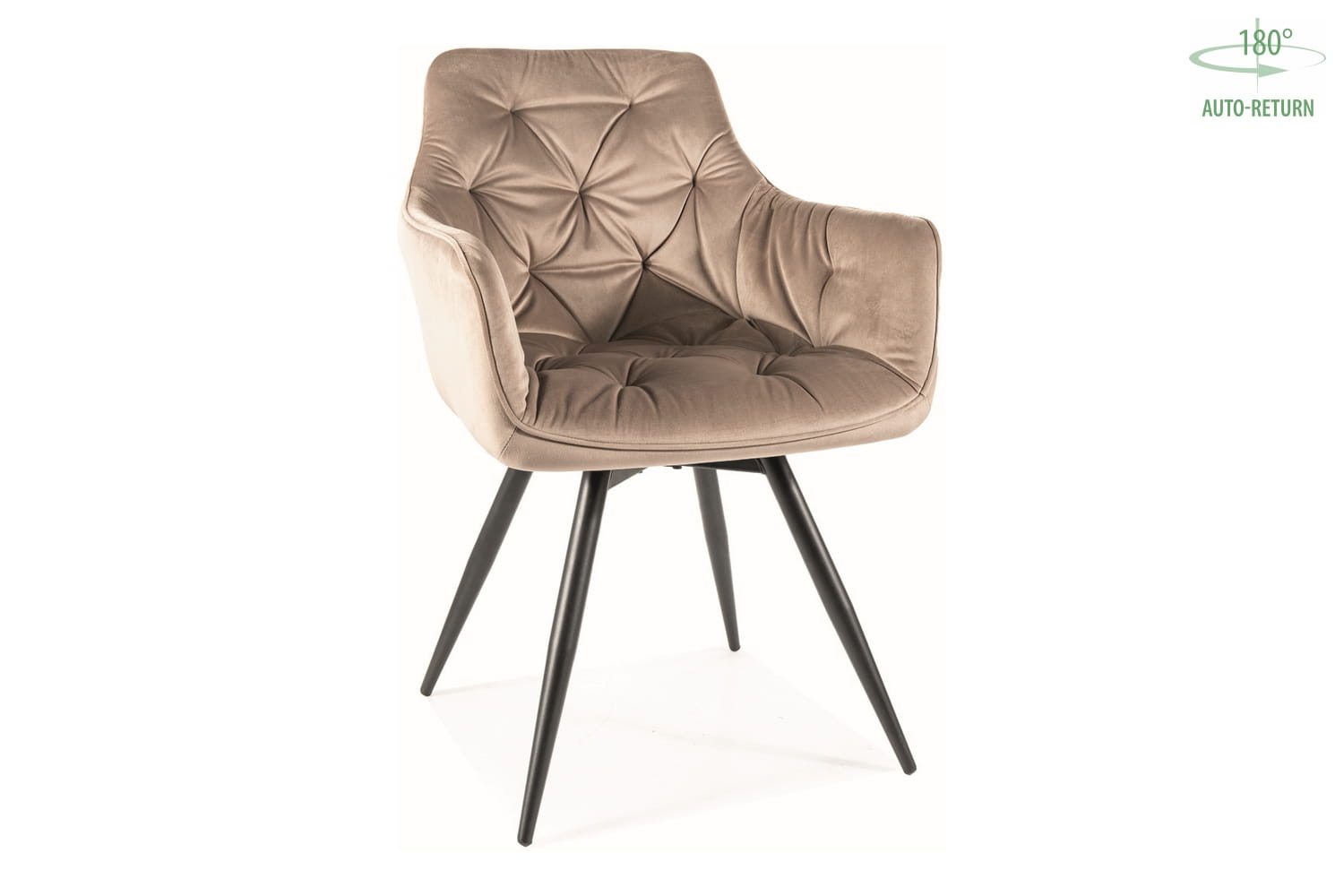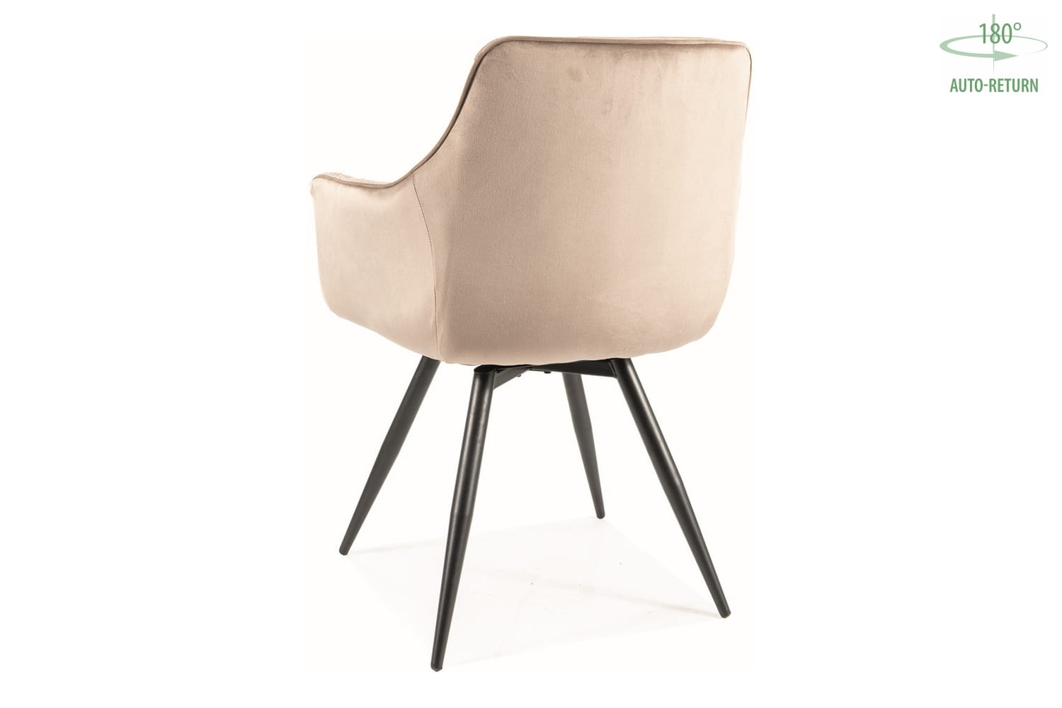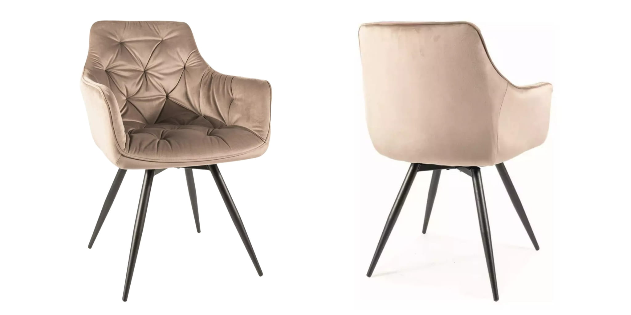 Krzesło obrotowe MANGO welurowe beżowe to połączenie wygody i elegancji, które odmieni Twoje wnętrze. Welurowa tapicerka w modnym odcieniu beżu wprowadza przytulny klimat, a solidny czarny stelaż dodaje lekkości i nowoczesnego charakteru. Dzięki mechanizmowi obrotowemu 180° krzesło jest niezwykle praktyczne zarówno przy stole w jadalni, jak i przy biurku czy toaletce. To wybór, który łączy w sobie styl, funkcjonalność i komfort codziennego użytkowania.