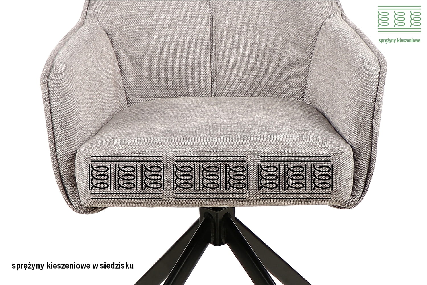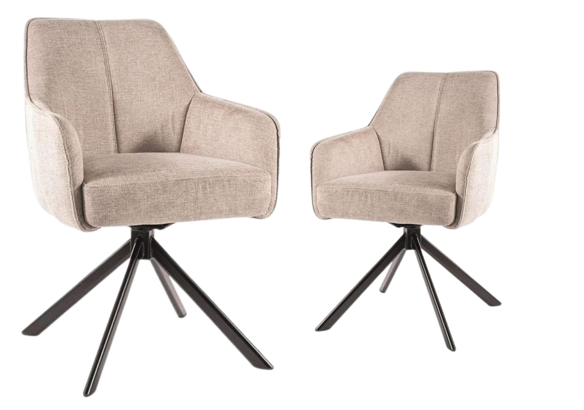Krzesło NOTTI to doskonałe połączenie nowoczesnego designu z niezrównanym komfortem użytkowania. Wyposażone w innowacyjny mechanizm obrotowy 180° z funkcją powrotu, stanowi idealny wybór dla tych, którzy cenią sobie wygodę, styl i funkcjonalność. Tapicerka z tkaniny Brego 31 w odcieniu jasnego beżu wprowadza do wnętrza ciepło i elegancję, a czarny metalowy stelaż dodaje mu nowoczesnego charakteru.