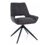 Krzesło obrotowe TELLO w kolorze ciemny szary to doskonałe połączenie komfortu, elegancji i funkcjonalności. Dzięki mechanizmowi obrotowemu 180° użytkownik zyskuje wygodę codziennego użytkowania bez konieczności przesuwania krzesła. Tapicerka z tkaniny Bjorn 16 i czarny, metalowy stelaż wpisują się w aktualne trendy wnętrzarskie, idealne zarówno do domu, jak i do eleganckich przestrzeni komercyjnych.