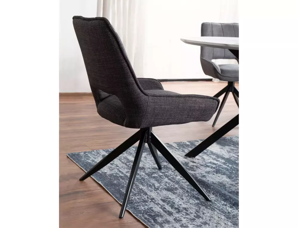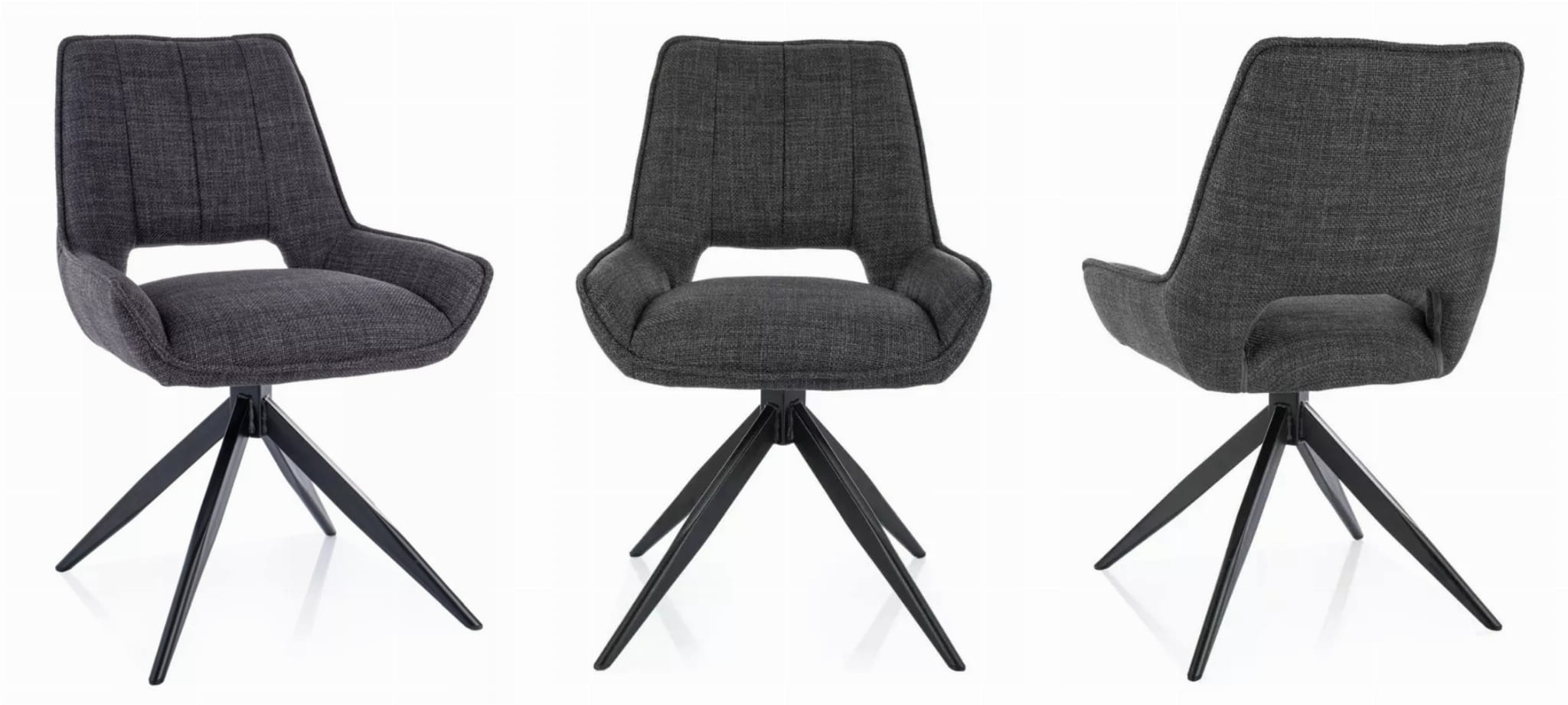 Krzesło TELLO w odcieniu ciemnego szarego to nie tylko modny akcent, ale i wysoce praktyczny mebel. Dzięki mechanizmowi obrotowemu 180° bez trudu zmienisz kierunek siedzenia, co świetnie sprawdzi się w domowym biurze, jadalni, salonie czy przy toaletce. Krzesło prezentuje się nowocześnie i elegancko – idealne do wnętrz w stylu skandynawskim, nowoczesnym i minimalistycznym.