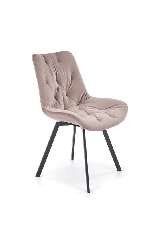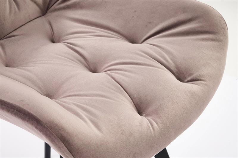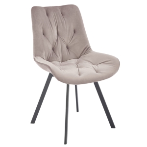 Tapicerowane miękkim welurowym materiałem, w modnym beżowym kolorze, krzesło prezentuje się stylowo i ponadczasowo. Czarne, metalowe nogi wprowadzają nowoczesny kontrast, a ergonomiczne wyprofilowanie oparcia dba o wygodę podczas siedzenia.