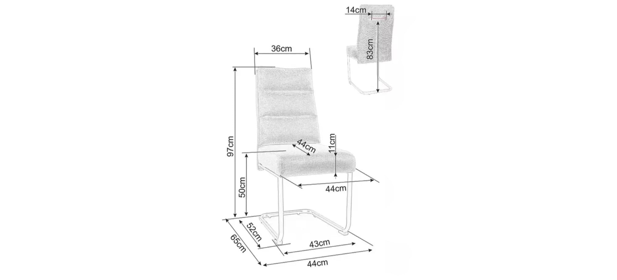 - Głębokość siedziska: 44 cm