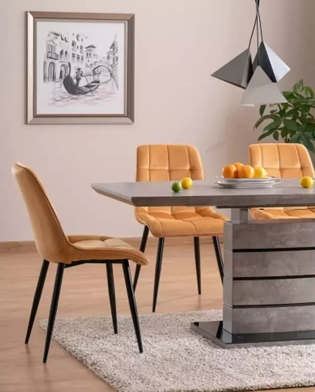 CHIC velvet curry to komfortowe krzesło tapicerowane welurem, które łączy miękką tkaninę velvet z czarnym metalowym stelażem. Zgrabne proporcje gwarantują wygodę przy stole, a kolor curry dodaje aranżacji ciepła i charakteru. To idealny wybór, jeśli szukasz krzesła do jadalni velvet lub nowoczesnego krzesła do salonu, które podbije serca domowników i gości.