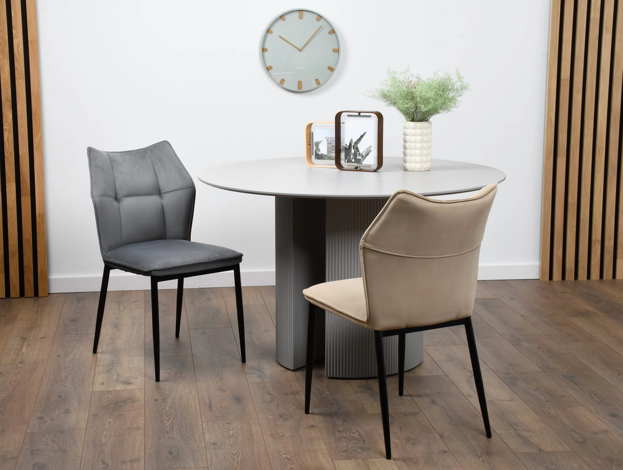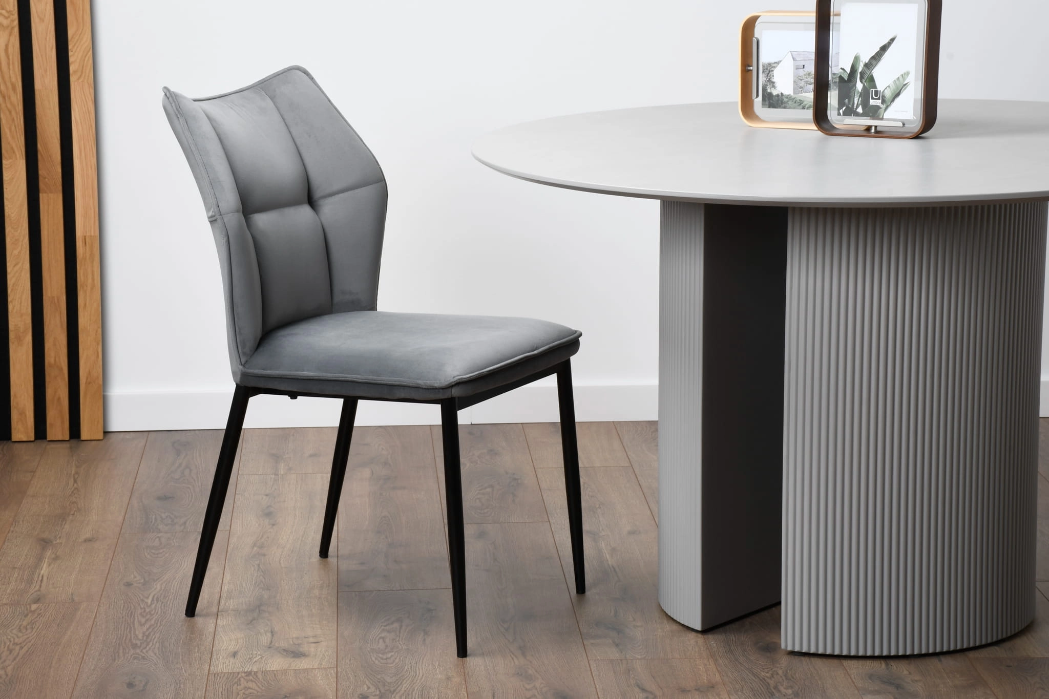 Krzesło DERK to propozycja dla osób, które szukają mebla łączącego wygodę użytkowania z ponadczasowym designem. Aksamitny welur w odcieniu szarości nadaje wnętrzu przytulności i elegancji, a minimalistyczna forma świetnie komponuje się zarówno z nowoczesnymi aranżacjami, jak i wnętrzami w stylu glamour czy loftowym. Dzięki swojej uniwersalności, krzesło doskonale sprawdzi się jako krzesło do stołu w jadalni, wygodne krzesło do kuchni, a nawet jako krzesło do biurka w domowym gabinecie.