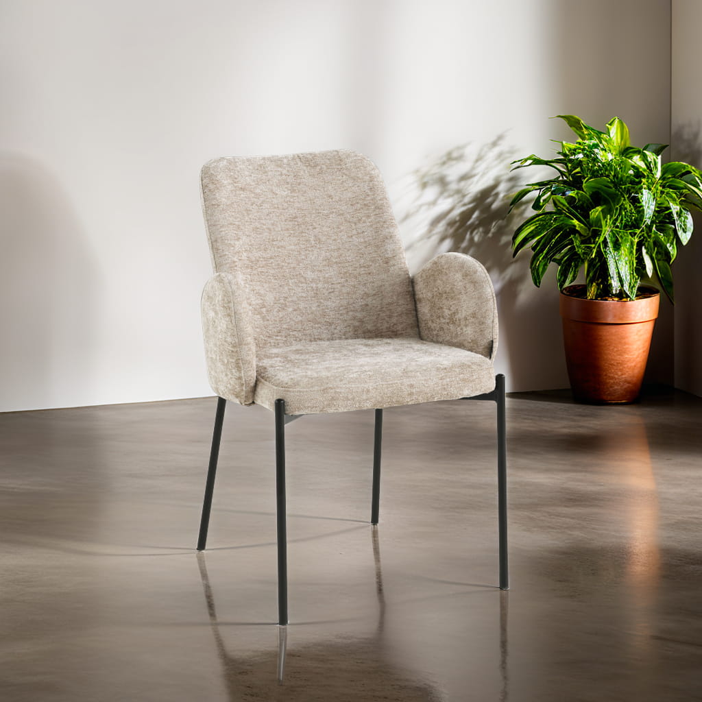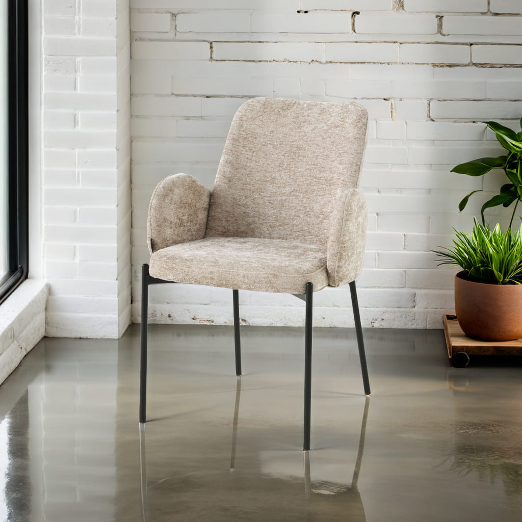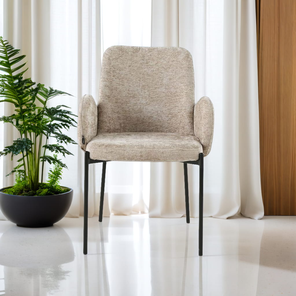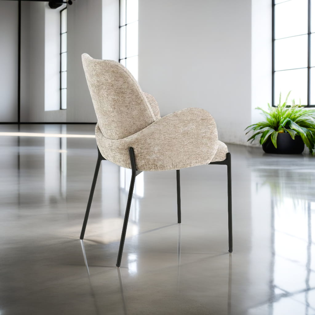 Krzesło tapicerowane GUSTO to połączenie nowoczesnego stylu z funkcjonalnością, które doskonale komponuje się z wnętrzami urządzonymi w stylu glamour, industrialnym czy klasycznym. Wykonane z wysokiej jakości materiałów, takich jak beżowa tkanina boucle oraz metalowe nogi, zapewnia nie tylko estetyczny wygląd, ale także trwałość i stabilność.