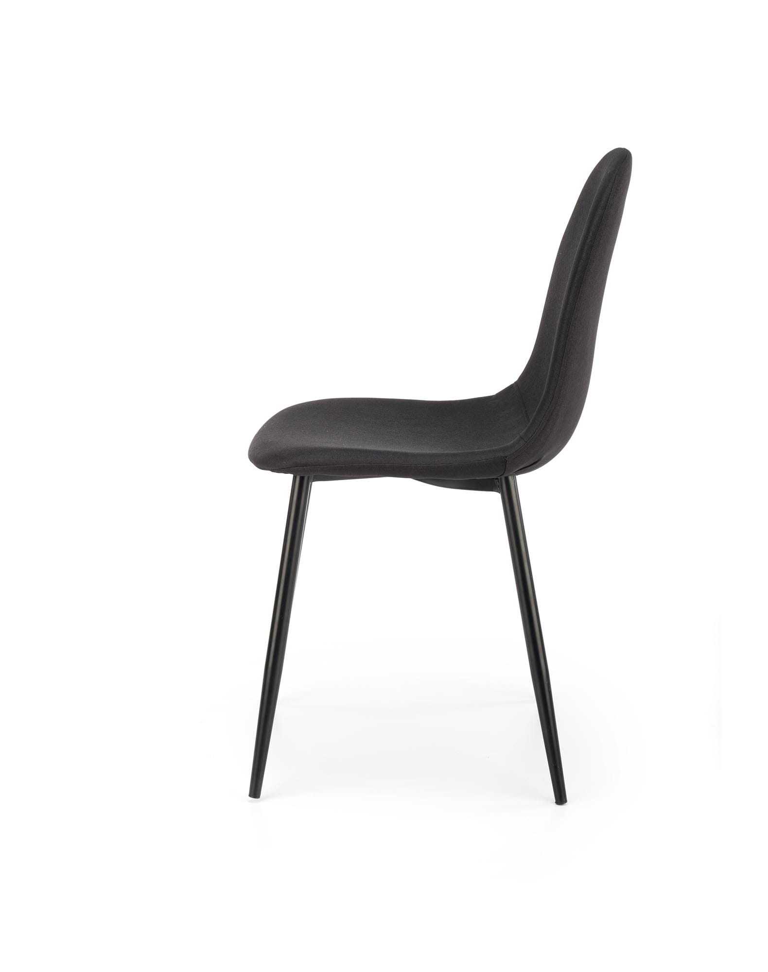 Krzesło tapicerowane K449 to doskonały wybór dla osób, które szukają stylowego i wygodnego mebla do codziennego użytku. Czarna tapicerka z tkaniny w połączeniu z czarnym metalowym stelażem nadaje mu ponadczasowy, elegancki charakter. Idealnie sprawdzi się jako krzesło do nowoczesnej jadalni lub kuchni.