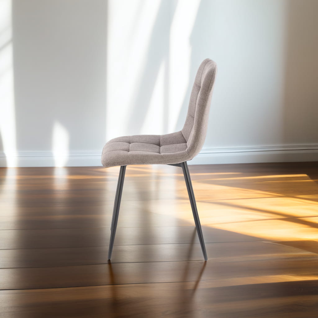 Stelaż z metalu w kolorze czarnym gwarantuje stabilność i długowieczność, a jego prosta forma podkreśla uniwersalny charakter mebla. Tapicerka jest przyjemna w dotyku, odporna na zużycie i łatwa do utrzymania w czystości, co sprawia, że krzesło świetnie sprawdzi się w codziennym użytkowaniu.