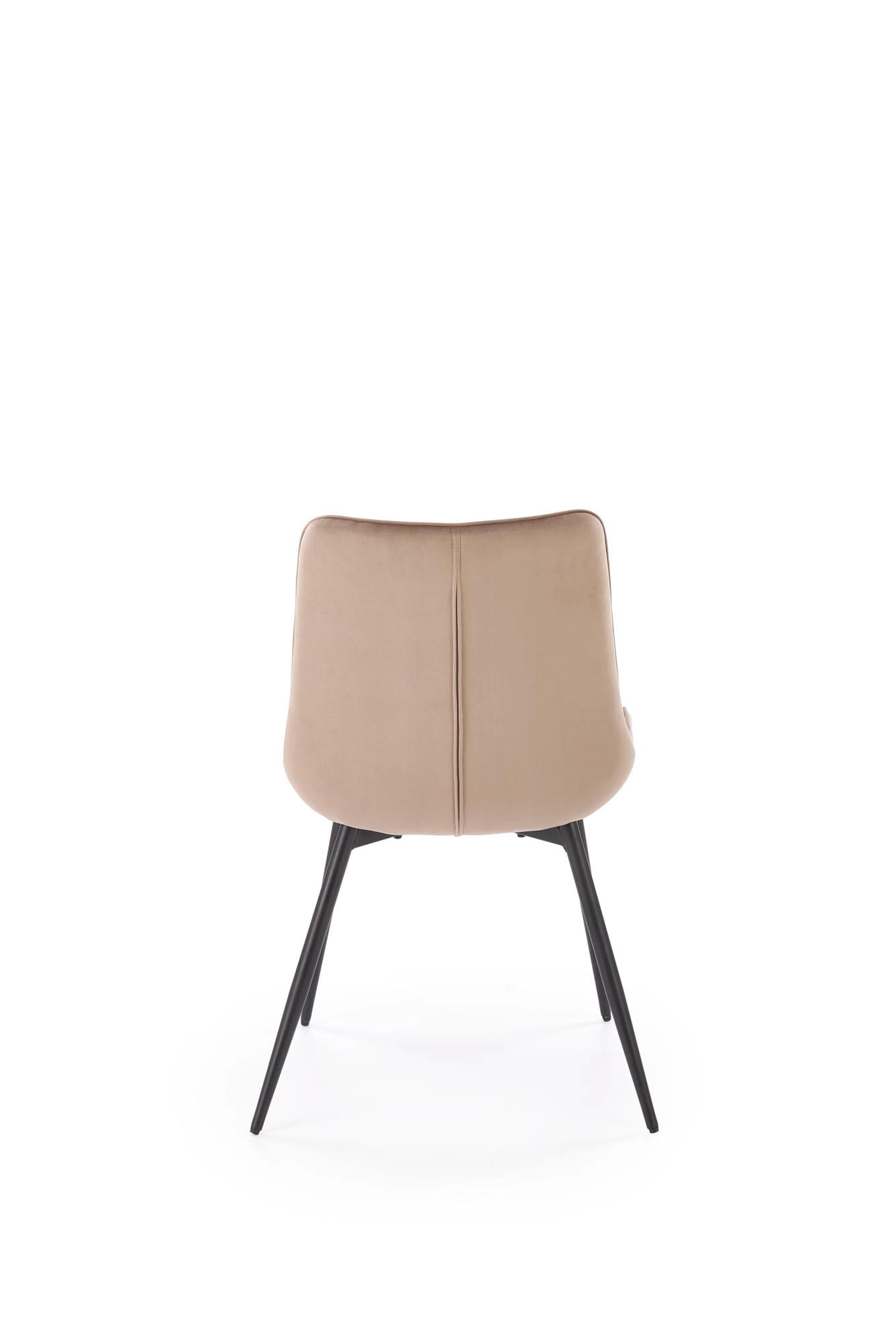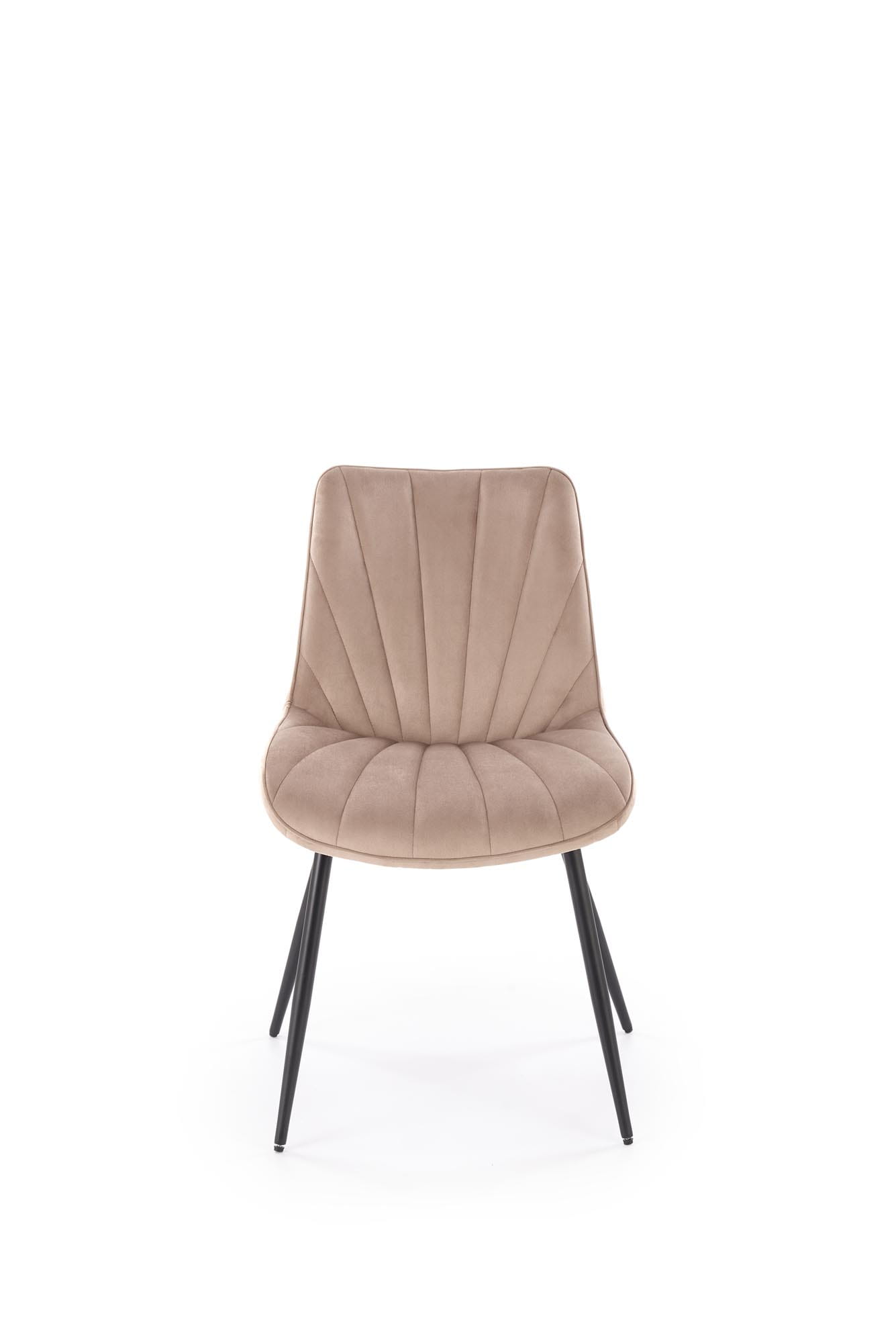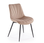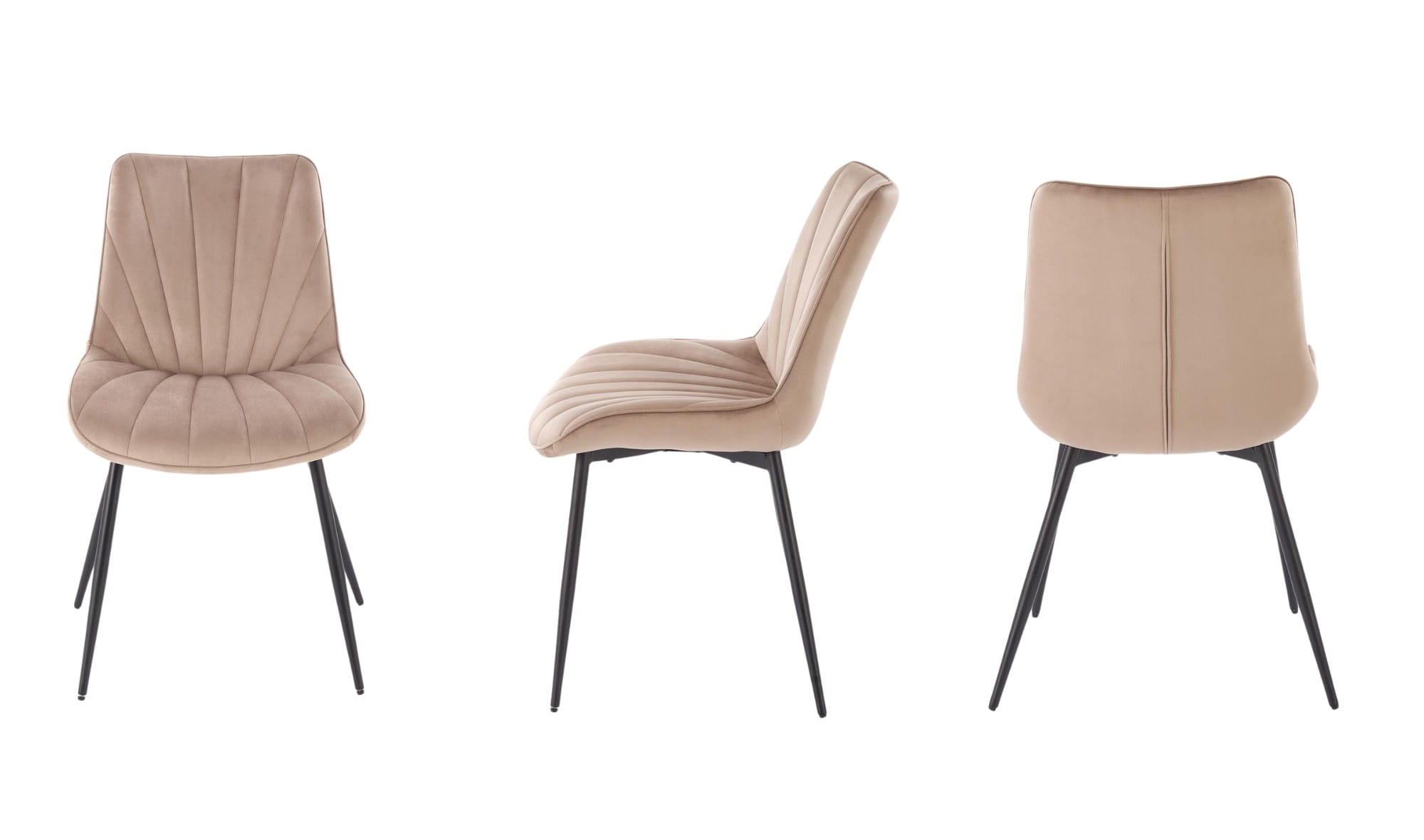 Tapicerowane krzesło w kolorze beżowym to znakomity wybór do nowoczesnych, klasycznych i stonowanych przestrzeni. Miękka tkanina velvet Bluvel w połączeniu z czarnym metalowym stelażem tworzy harmonijny duet, który sprawdzi się w jadalni, salonie czy eleganckim biurze.