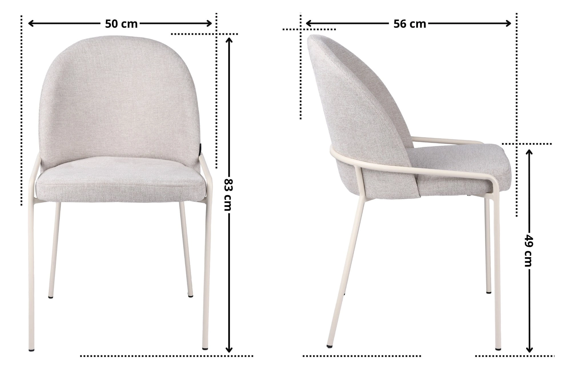 Model najlepiej współgra ze stołami w odcieniu naturalnego drewna, blatami w kolorze kaszmiru, beżowymi dywanami, jasnymi zasłonami, lampami o mlecznych kloszach oraz dodatkami z rattanu, ceramiki lub czarnego metalu. To stabilne krzesło na metalowych nogach, które możesz wykorzystać zarówno jako element kompletu w jadalni, jak i pojedynczy akcent w sypialni lub przy biurku.