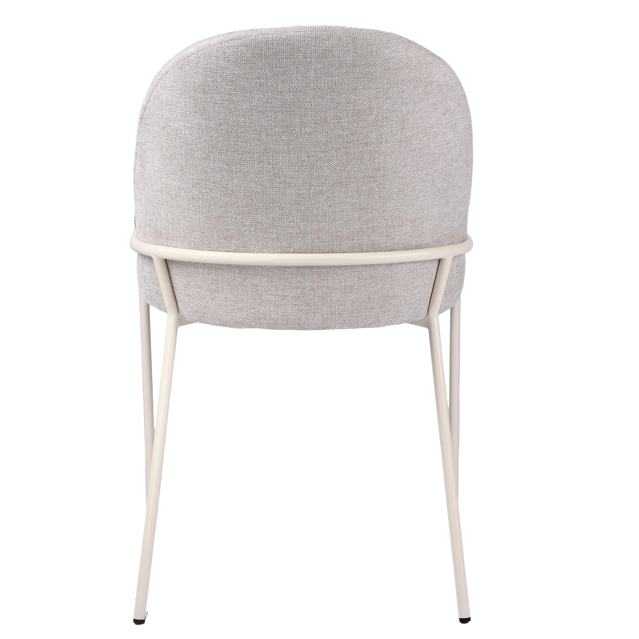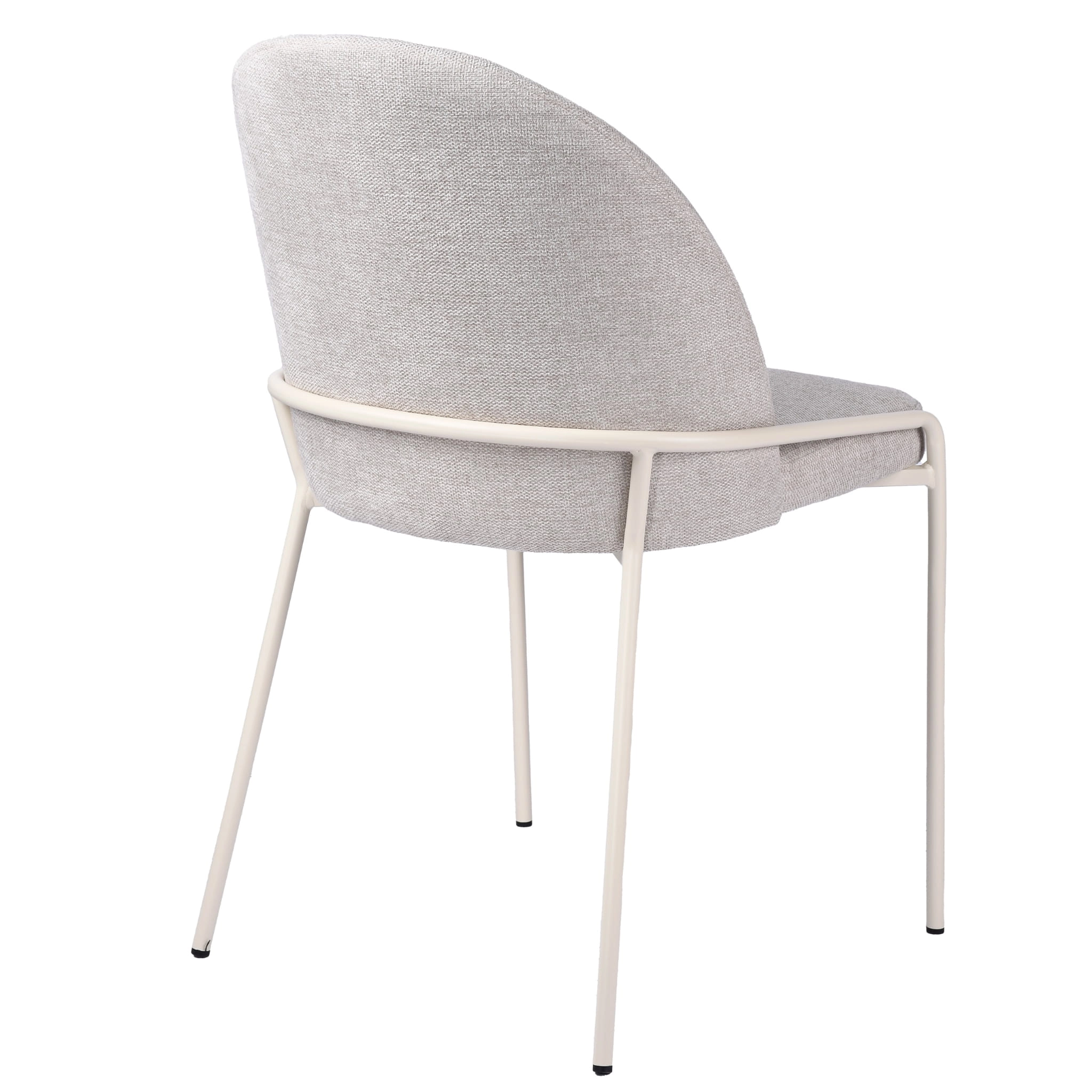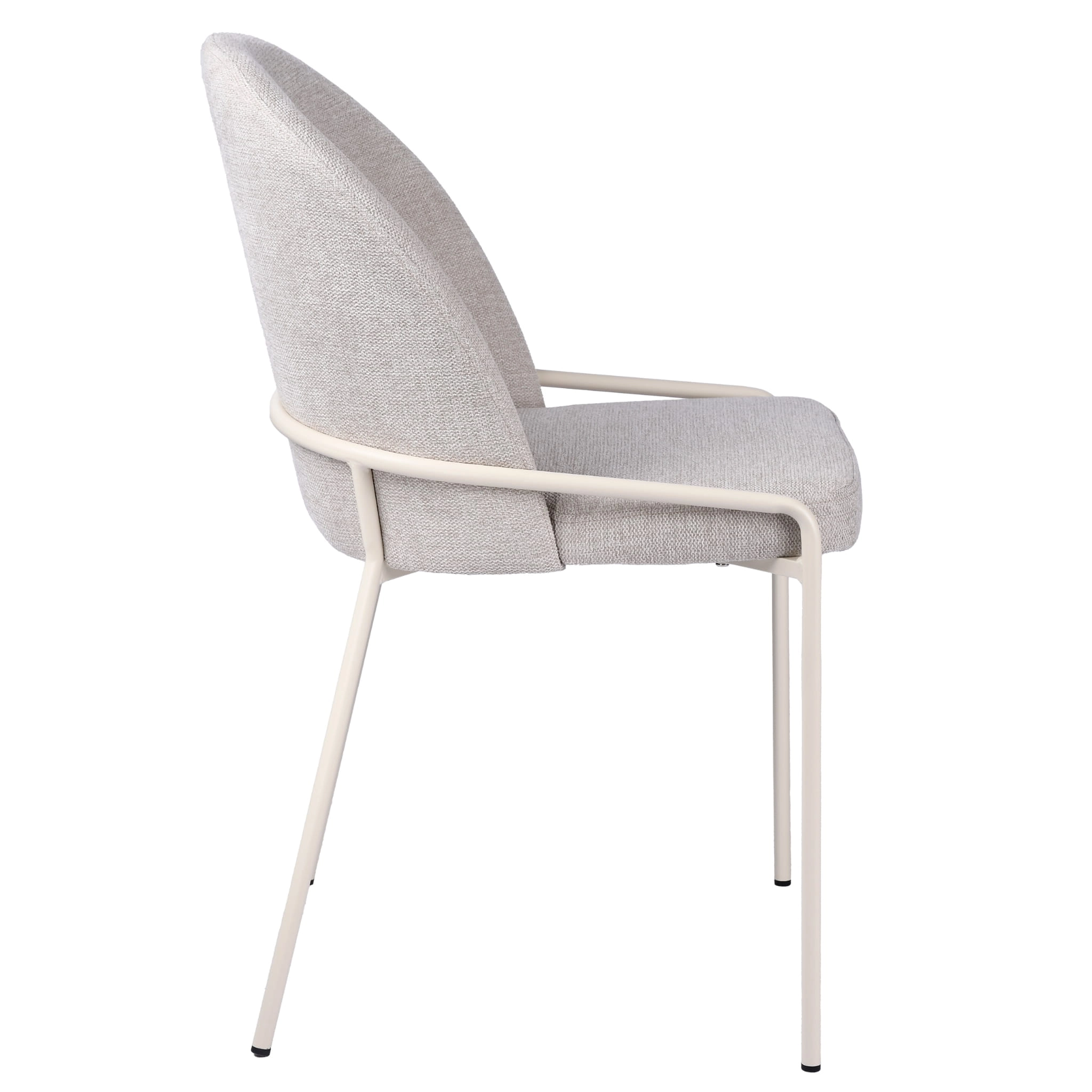 To beżowe krzesło do wnętrza w stylu skandynawskim dobrze odnajdzie się przy okrągłym stole, prostokątnym blacie w kolorze drewna, jasnej toaletce albo w kuchni połączonej z salonem. Zaokrąglone oparcie łagodzi linię mebla, a beżowy stelaż nie tworzy mocnego kontrastu, dzięki czemu całość wygląda spójnie i spokojnie.