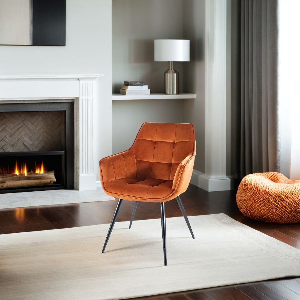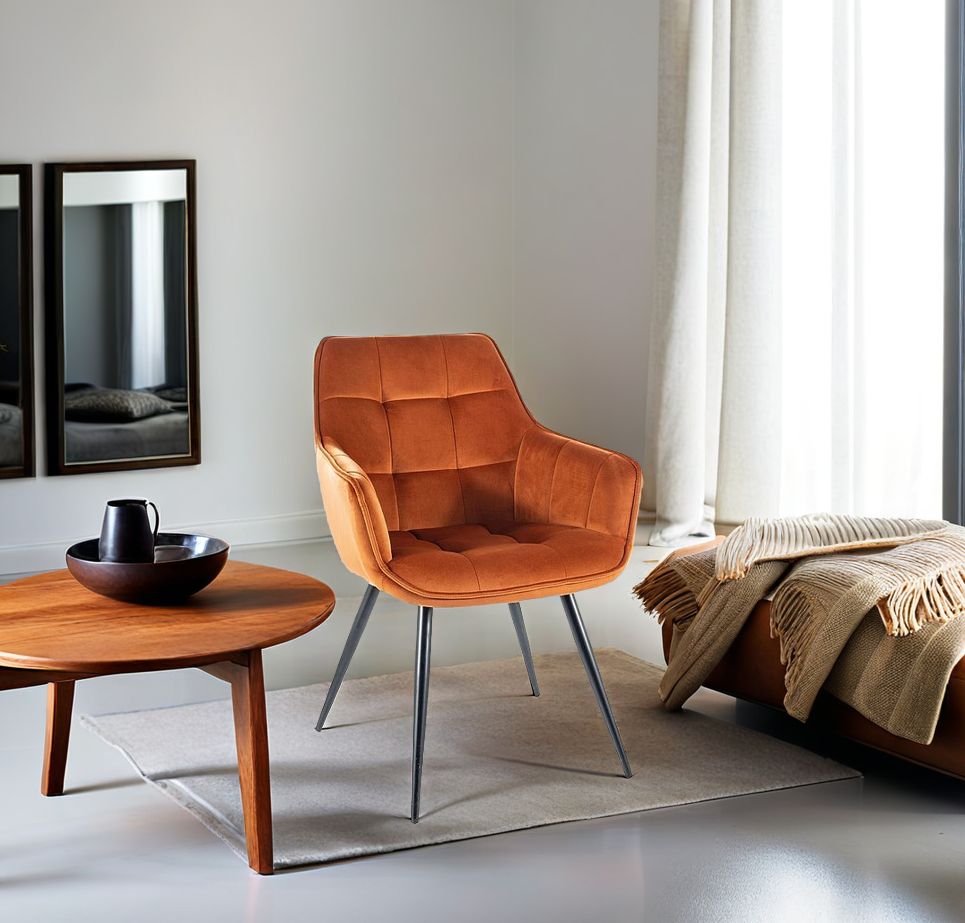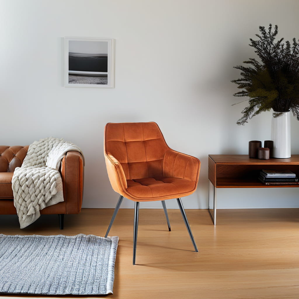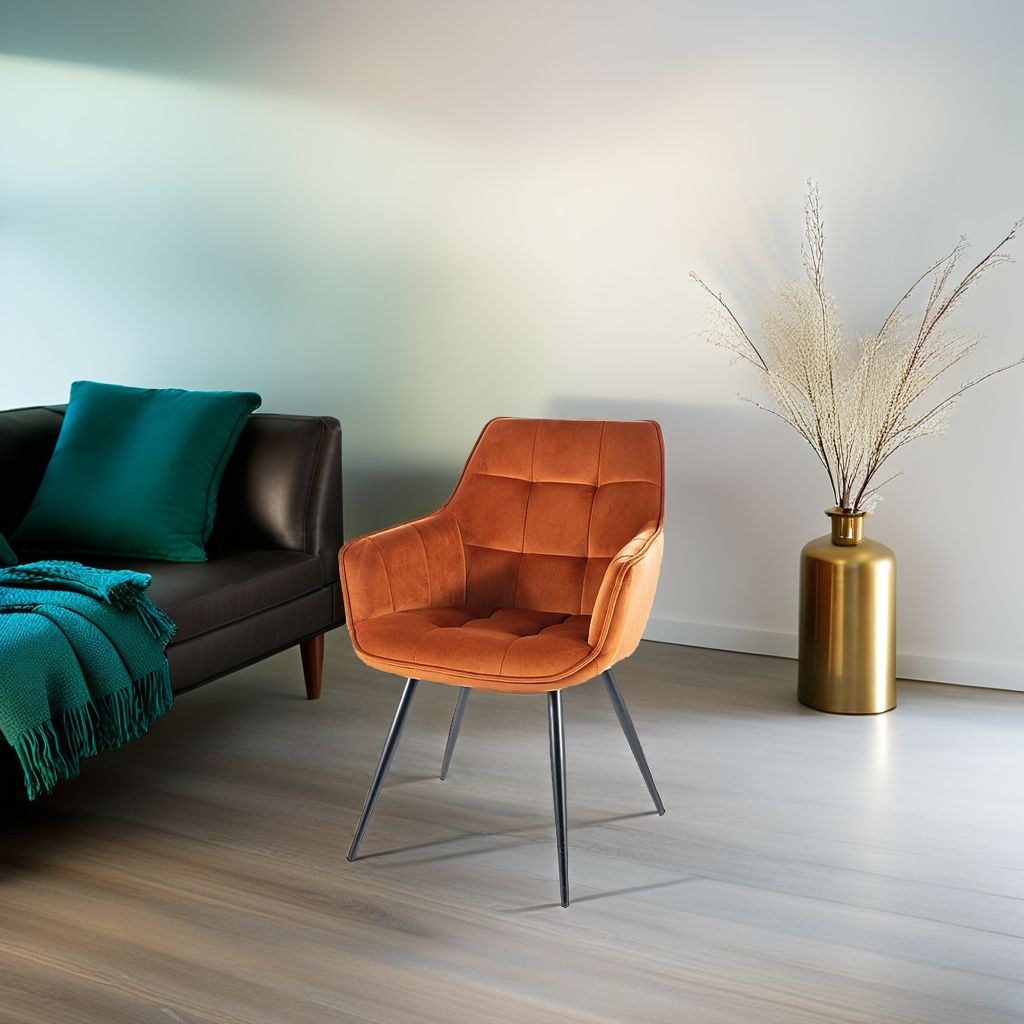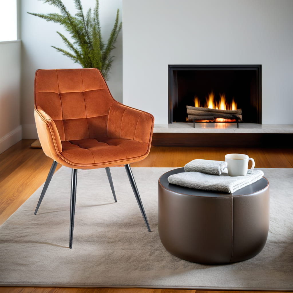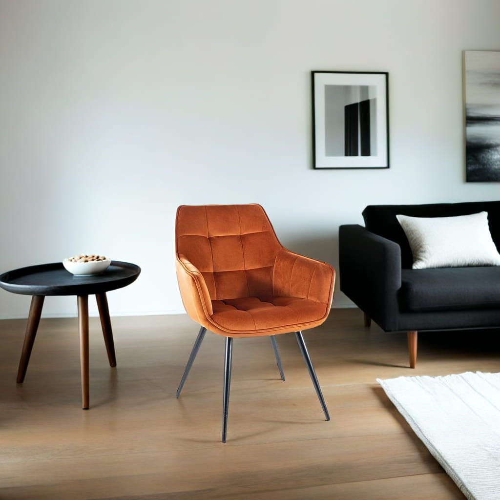 Krzesło welurowe LILIA w odcieniu cynamonowym to nie tylko wygoda, ale i wyrafinowana estetyka, która wyróżni Twoje wnętrze. Jego miękka tapicerka z weluru Bluvel jest niezwykle przyjemna w dotyku, a jednocześnie odporna na codzienne użytkowanie. Geometryczne pikowanie nadaje krzesłu eleganckiego charakteru, a czarne metalowe nogi zapewniają trwałość i stabilność.