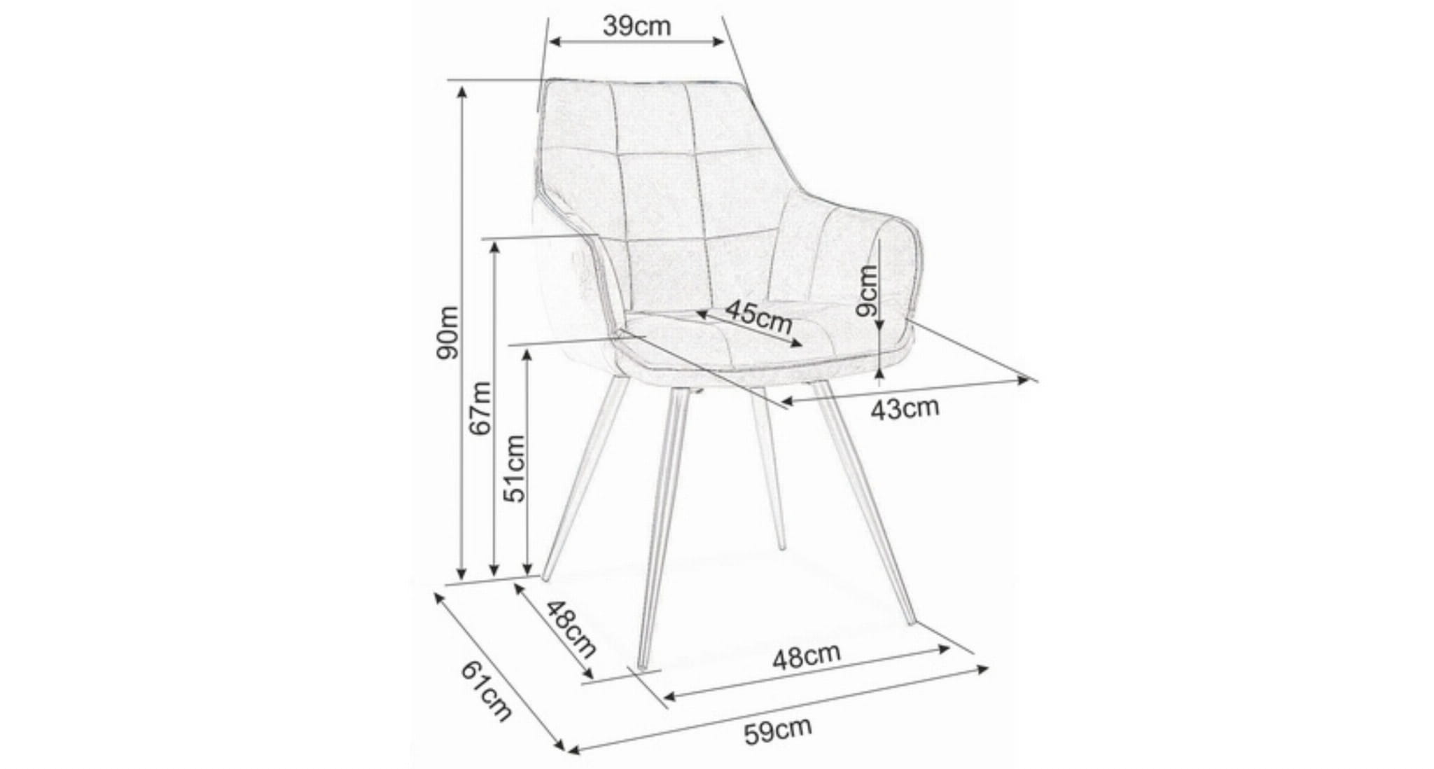 - Głębokość siedziska: 45 cm