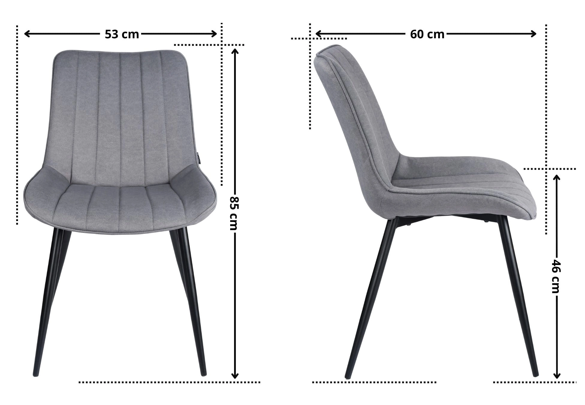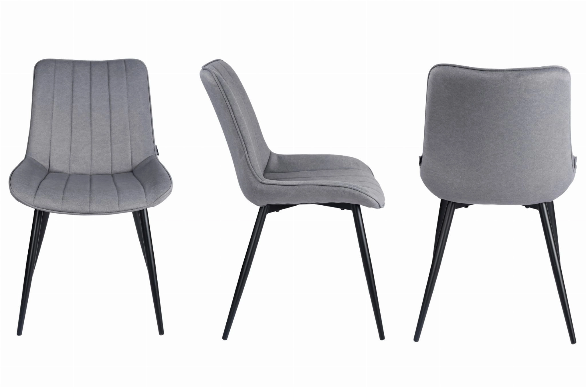 MENO w szarym kolorze pomaga stworzyć spokojną, uporządkowaną przestrzeń. Neutralna tapicerka nie konkuruje z blatem stołu ani dodatkami, a czarne nogi nadają całości nowoczesny akcent. To krzesło materiałowe do salonu i jadalni, które dobrze wygląda przy drewnie, czerni, bieli, beżu oraz kamiennych lub ceramicznych dekorach.