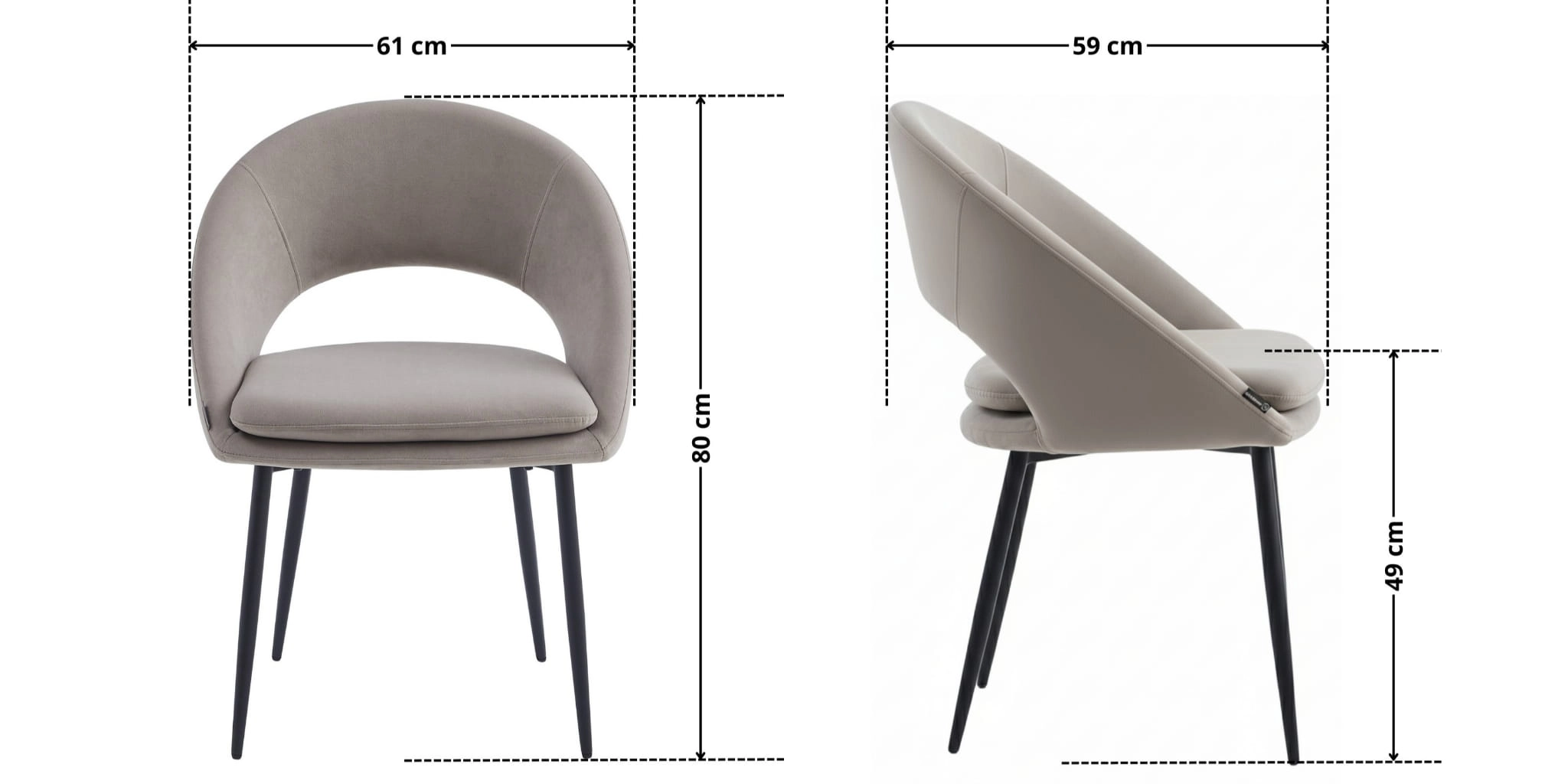 Czarna tapicerka velvet w neutralnym odcieniu nadaje wnętrzu przytulnego charakteru, a solidny metalowy stelaż w czarnym, piaskowym wykończeniu zapewnia trwałość i stabilność. To wygodne krzesło do jadalni, salonu czy biura, które harmonijnie wpisuje się w różne aranżacje – od nowoczesnych, przez skandynawskie, aż po minimalistyczne.