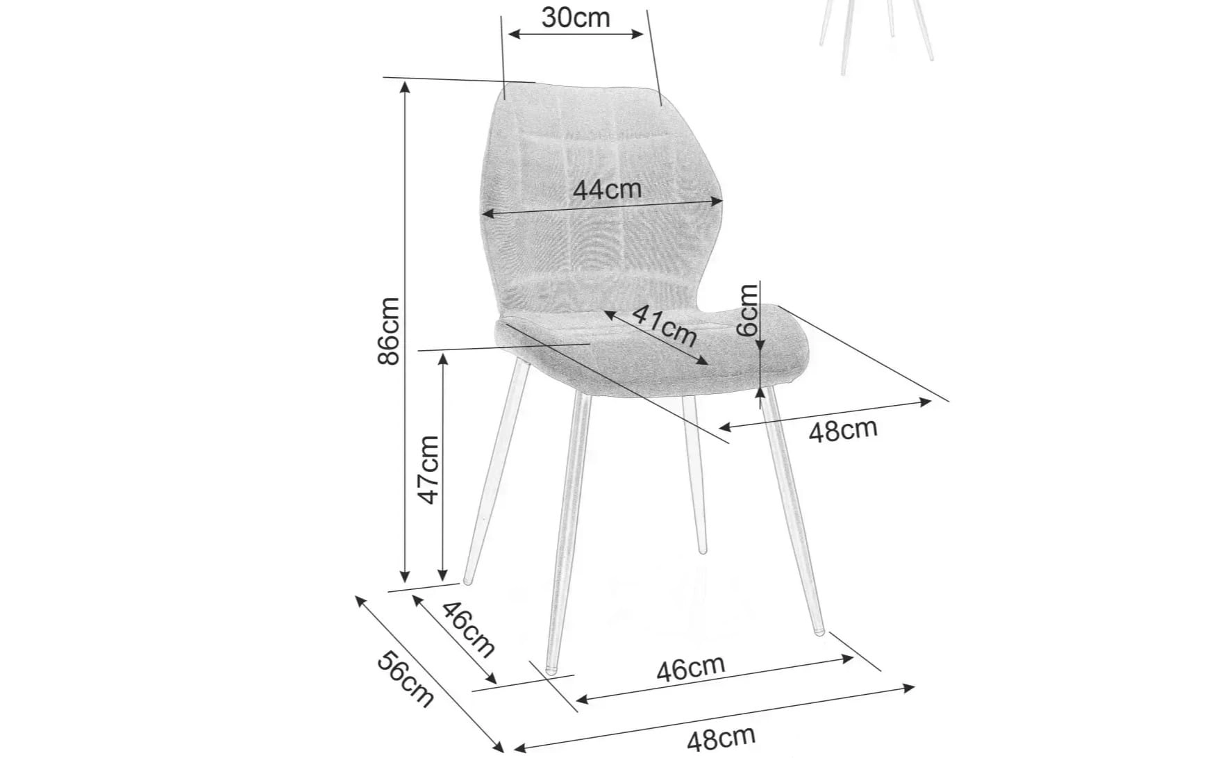 - Kompaktowe wymiary – Szerokość 48 cm pozwala na swobodne ustawienie większej liczby sztuk nawet przy mniejszym stole w kategorii meble do mieszkania.